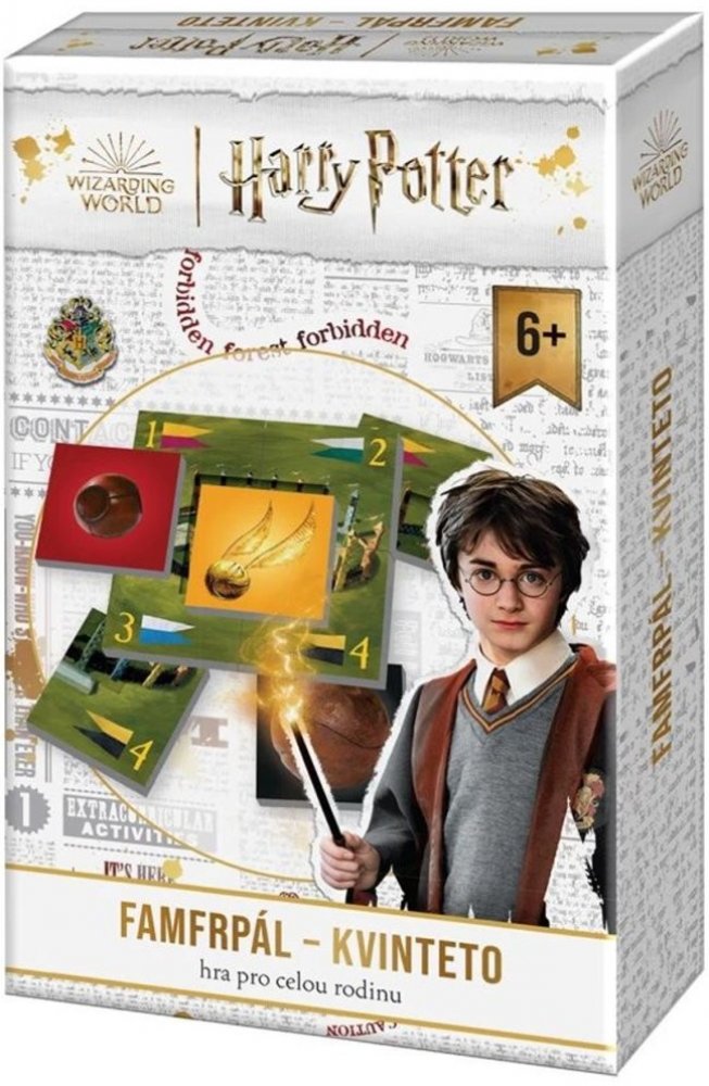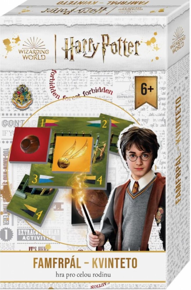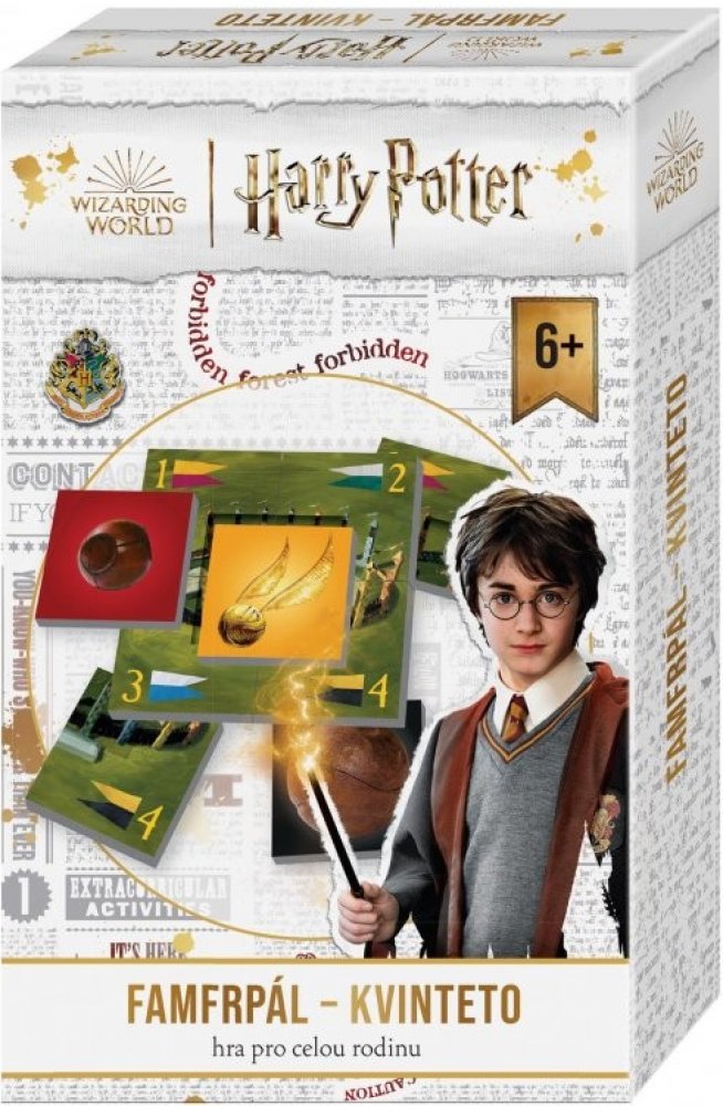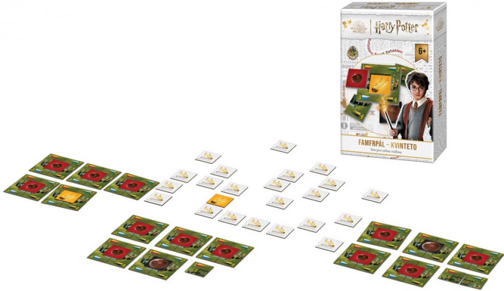 Sveďte napínavý souboj o co nejvyšší počet Camrálů, a následně o jedinou Zlatonku! A vyhýbejte se Potloukům, které vám mohou nadělit nelítostní soupeři. Napínavá rodinná hra pro malé i velké hráče, hra pro čaroděje i pro mudly. Cílem hry je získat co největší počet kvintet s nejvyšší bodovou hodnotou. Jedno kvinteto se skládá ze 4 kartiček, které tvoří hřiště, a páté kartičky Camrálu nebo Potlouku...