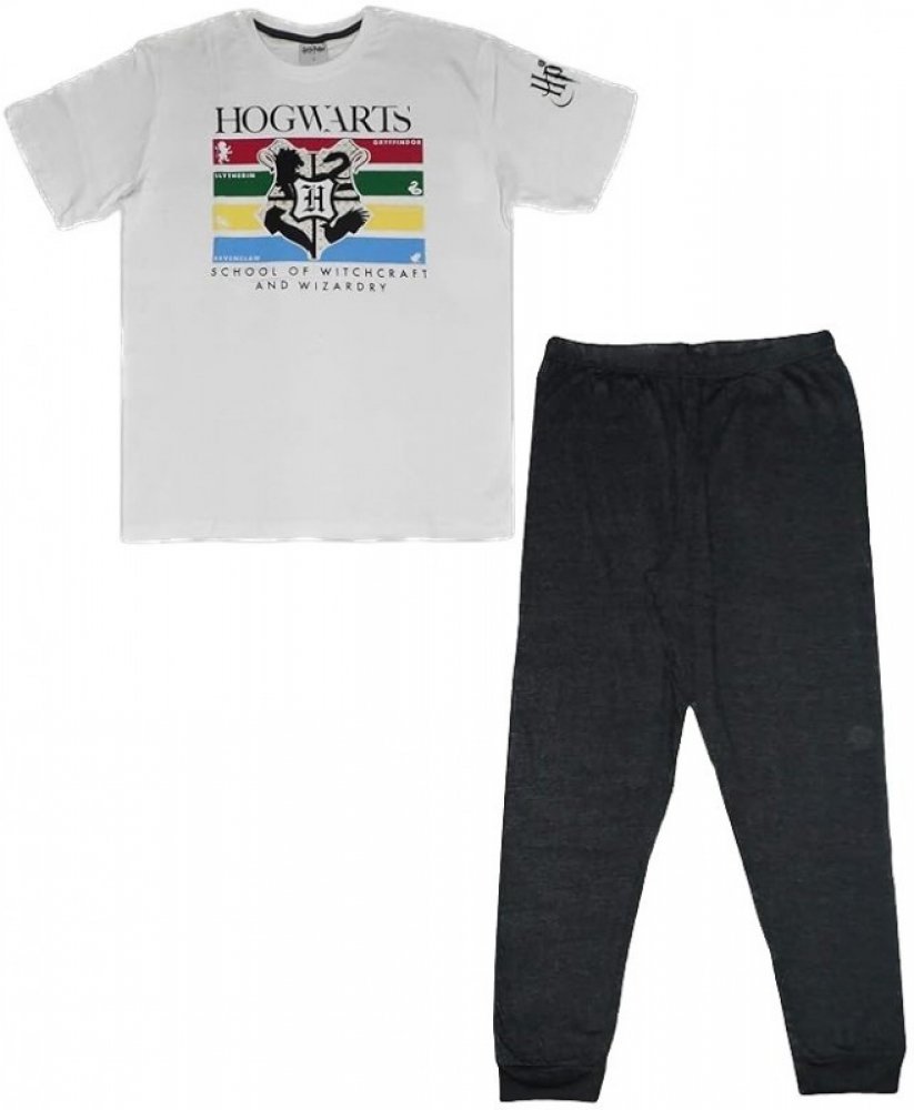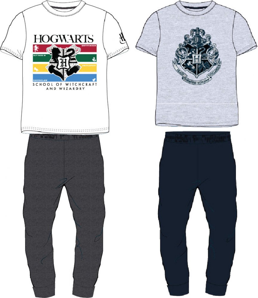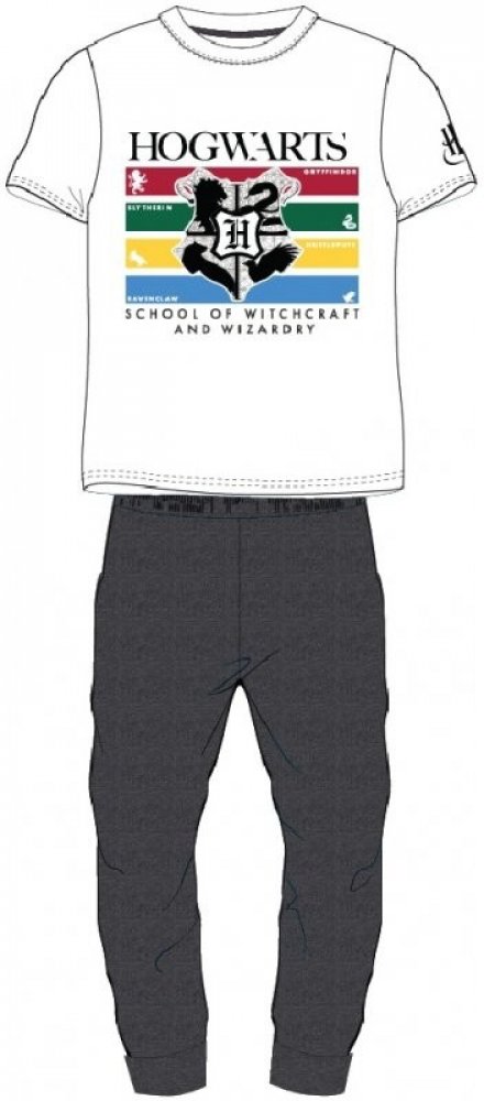 Harry Potter Hogwarts pánské pyžamo krátký rukáv bílo šedé