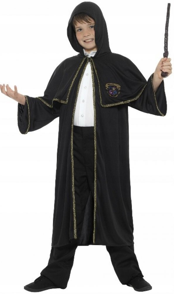 Dětský kouzelnický plášť s kapucí v černé barvě je skvělý doplněk k dětskému kostýmu na karneval nebo tématický večírek. Velikost pro děti od 7-9 let.