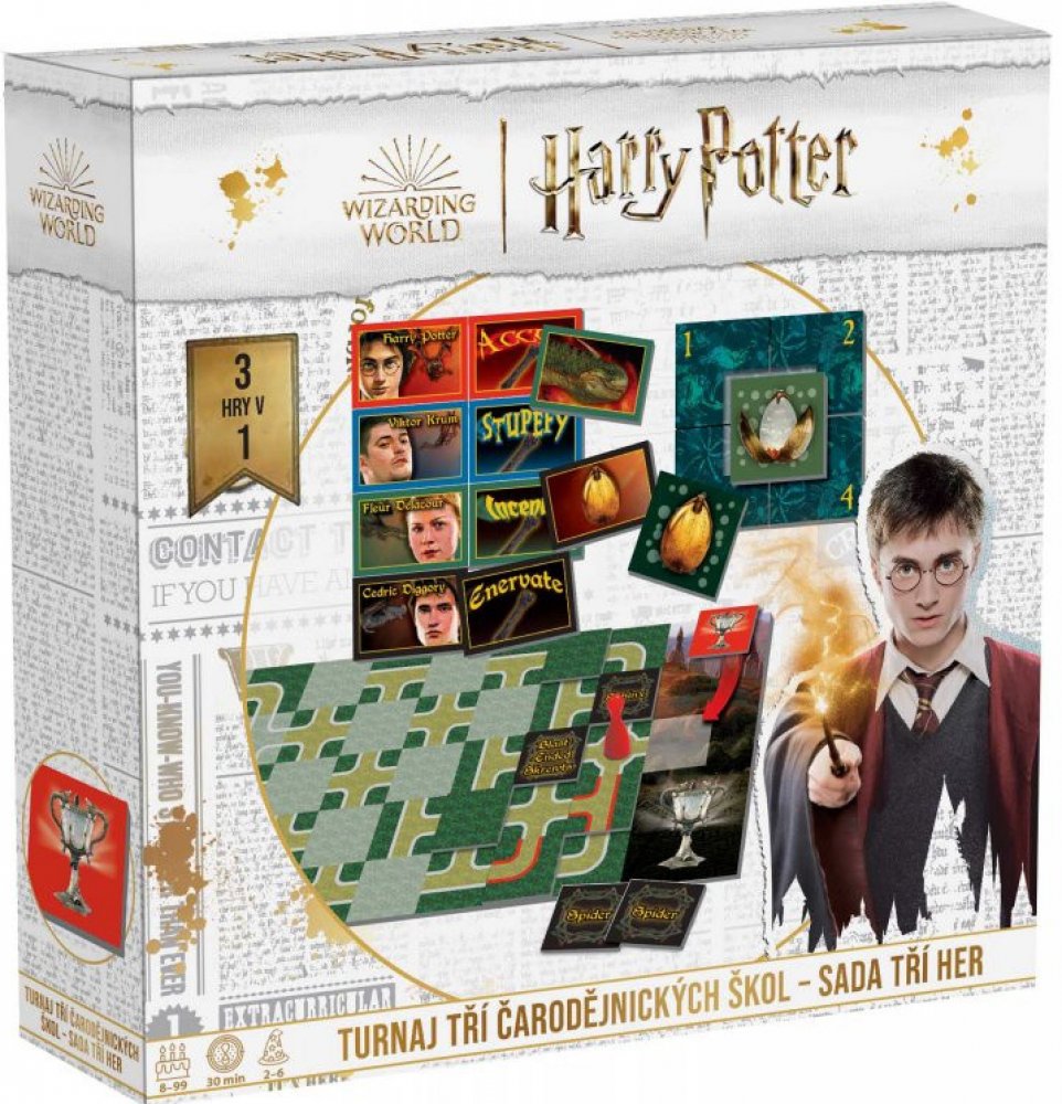 Sada 3 her. Každá z nich představuje jeden úkol z Turnaje o Ohnivý pohár a vtáhne vás do napínavého příběhu Harryho Pottera. Pravidla jsou jednoduchá, a tak si na své přijdou čarodějové i mudlové všech věkových kategorií. Vyrobeno v České republice.