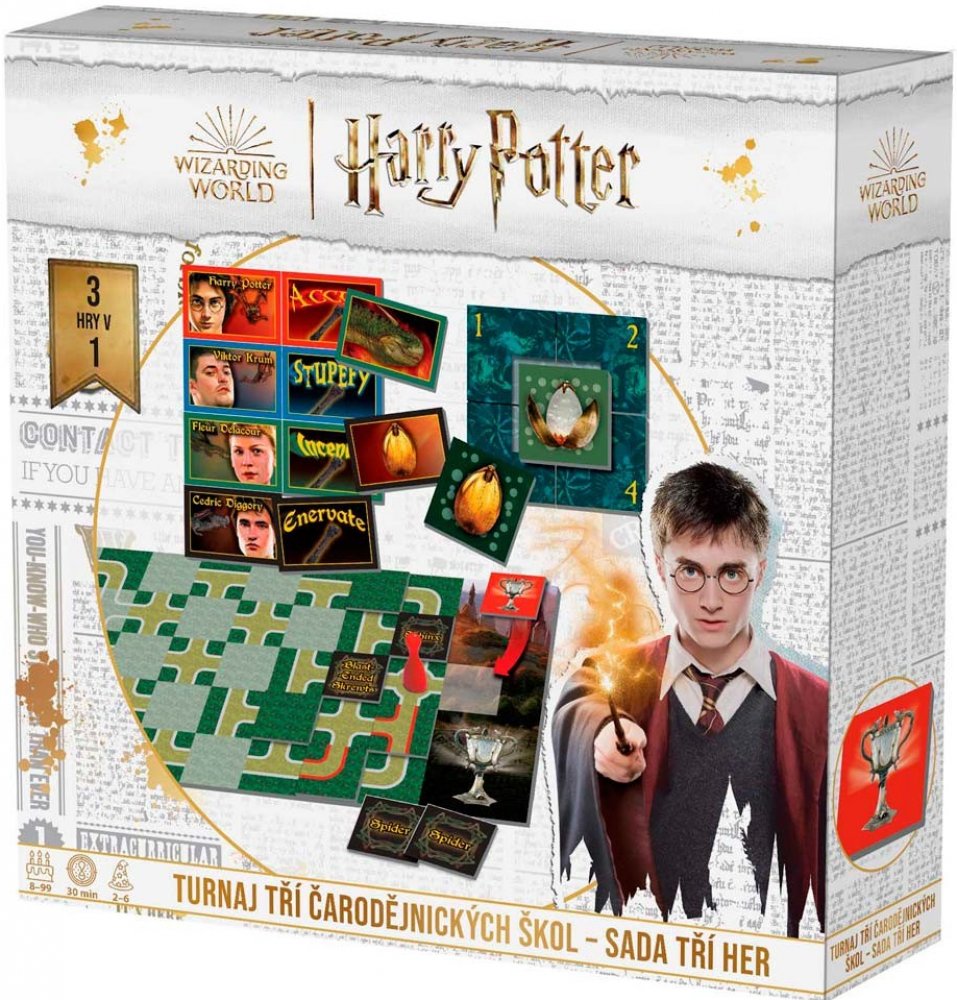 Během turnaje o Ohnivý pohár musí mladí čarodějové splnit celkem tři úkoly. Každý úkol je představen jednou hrou: Souboj s draky, Rozluštění tajemství a Cesta bludištěm. Originální stolní rodinná hra pro malé i velké hráče, se kterou se stanete součástí známého příběhu Harry Pottera. Díky jednoduchým pravidlům si ji s chutí zahraje jak skalní fanoušek hrdinů z Bradavic, tak třeba i dědeček, který ...