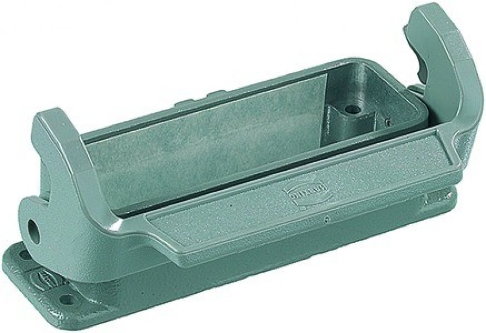 Bulkhead mounted housings, Size: 16 A, Low construction, Single locking lever, Polycarbonate, Stainless steel, Material (hood/housing): Aluminium die-cast, Powder-coated, RAL 7037 (dust grey), Material (seal): NBR, Degree of protection: IP65