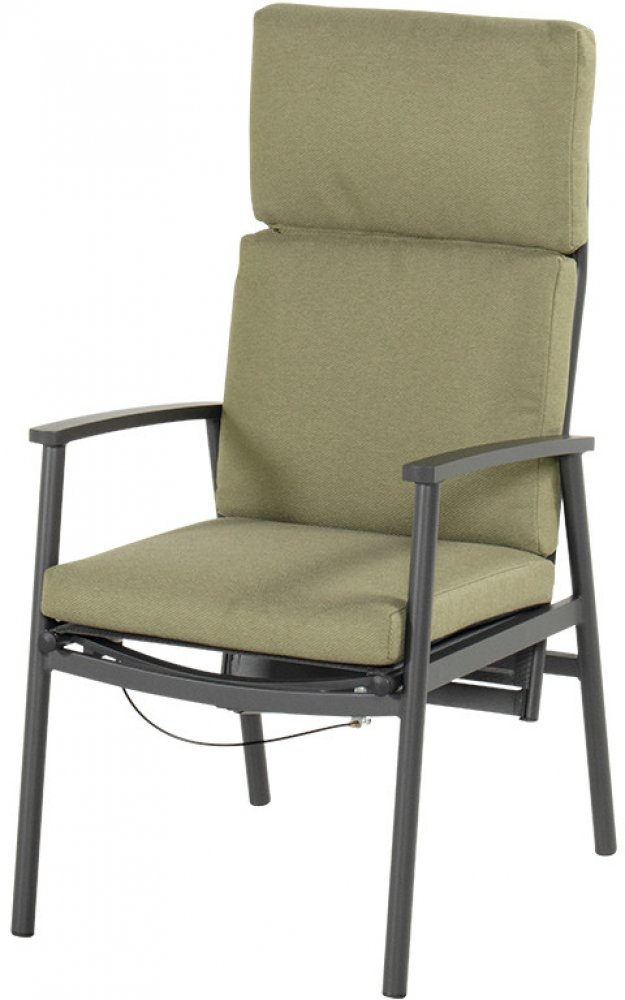 Nekonečný požitek! Jídelní polohovací křeslo Flora je pohodlné díky textilní opěrce a sedáku. Židle má také přirozený vzhled díky zeleným polštářům. Jídelní polohovací židle Flora je nastavitelná pomocí vzduchové pumpy, která se aktivuje tlačítkem na rámu. To vám umožní nastavit židli s přesností na centimetry. Ideální pro vychutnání každého slunečního paprsku.