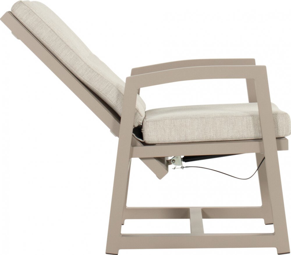 Zahradní polohovací židle Gio Hartman vás zaujme na první pohled. Hodí se nejen do exteriéru - do zahrady, na terasu nebo na balkon, ale využití najde i v interiéru. Polstrování je šité přímo na míru a dodává zahradnímu sezení naprostou pohodlnost. Díky rychleschnoucí náplni a nenasákavé textilii i po vydatném dešti rychle vyschnou. Doporučujeme polštáře během zimy skladovat na suchém místě, aby zůstaly krásné po mnoho let. Nábytek je vyroben z hliníku v barvě xerix a sand. Rám s textilenovou úpravou je ideální pro venkovní použití a nevyžaduje žádnou údržbu kromě každoročního čištění. Zábavné na této židli je, že pomocí polohovacího systému AIRPUMP lze opěrák nastavit přesně podle vašich představ. Perfektní židle, abyste si mohli užívat venkovního života celé hodiny.