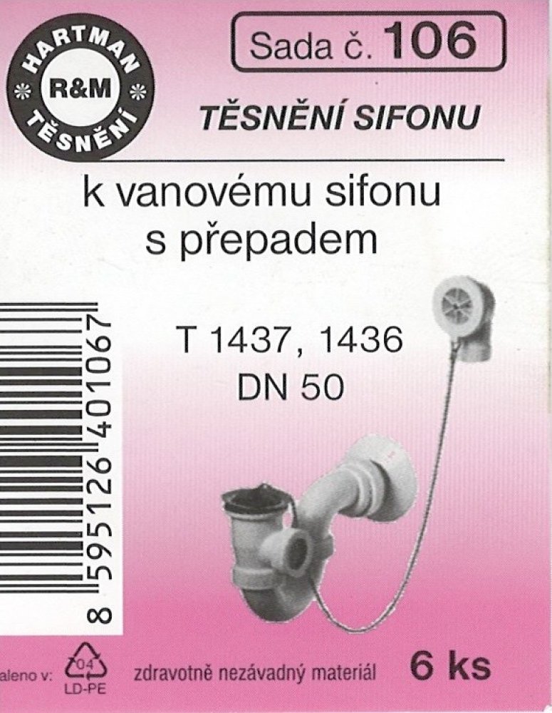 HARTMAN těsnění sifonu k vanovému sifonu s přepadem, sada č. 106