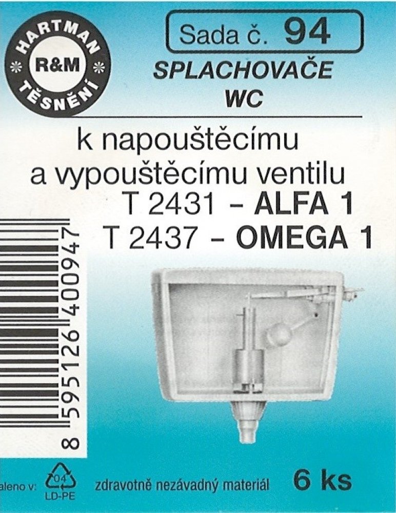 HARTMAN těsnění splachovače WC k napouštěcímu a vypouštěcímu ventilu, sada č. 94