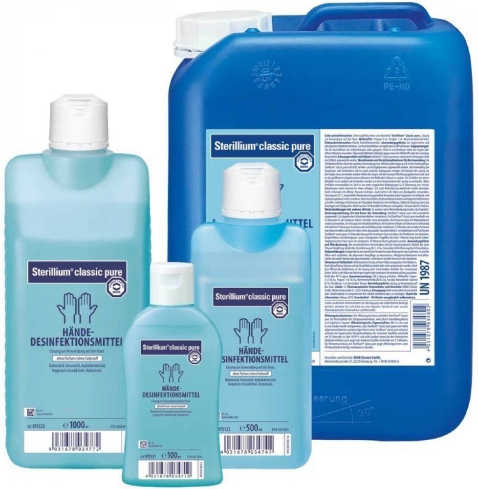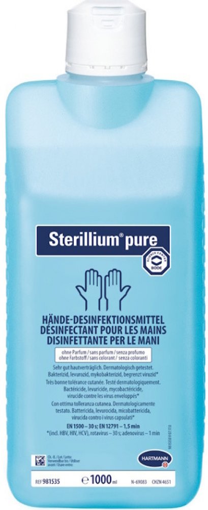 Pro hygienickou a chirurgickou dezinfekci rukou. Zejména vhodný pro všechny hygienicky relevantní obory ve zdravotnictví a v průmyslu, kde se klade zvláštní důraz na absenci barviv a vonných látek. Sterillium® pure je proto vhodný zejména pro uživatele s citlivou pokožkou a osoby s astmatem a atopickými onemocněními.