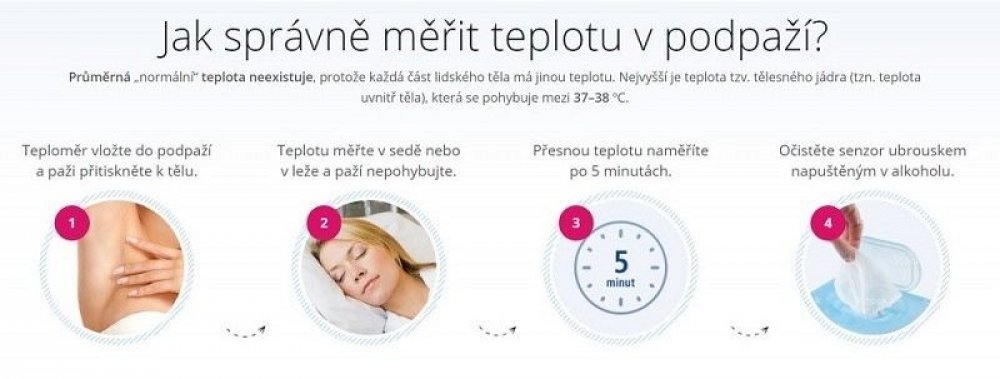 - Teplota naměřená na čele se mírně liší od teploty v podpaží nebo ústech (bývá o 0,1 stupně nižší).