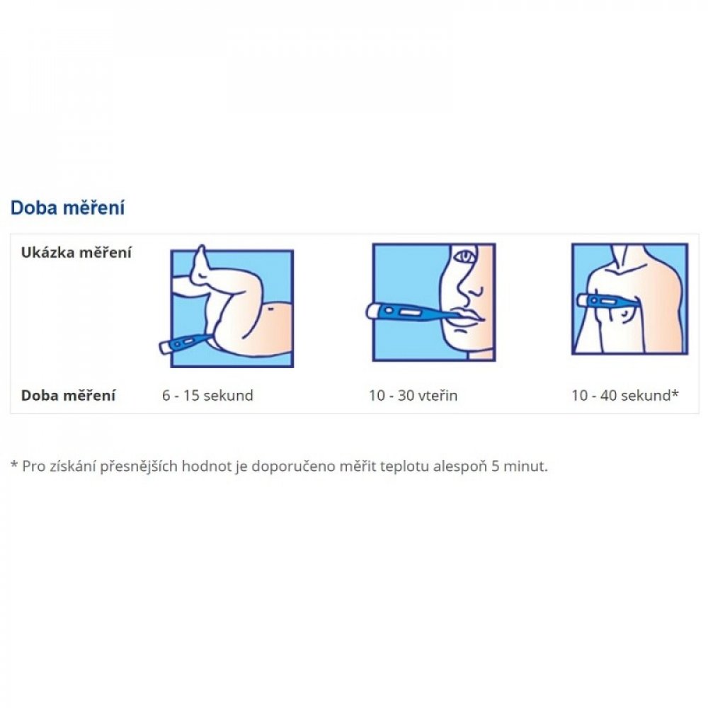 - Teplotu změří během 40 – 90 vteřin v závislosti na místě měření.