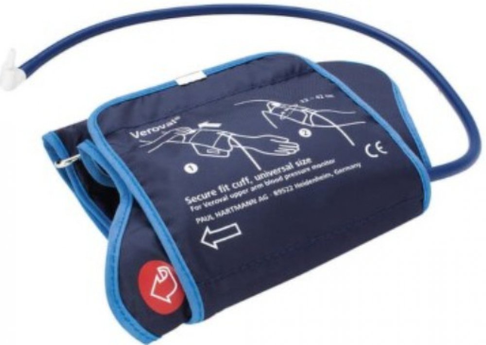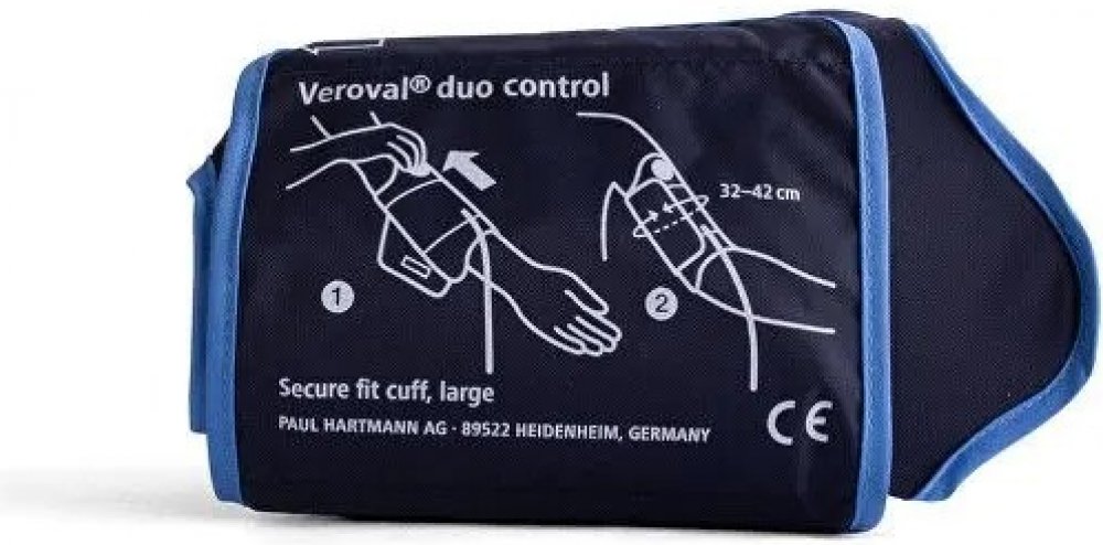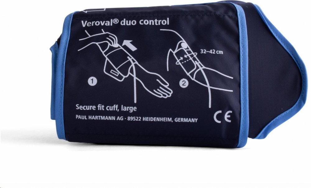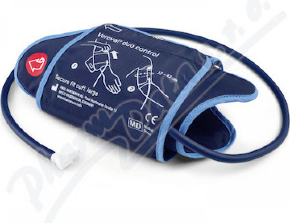 Náhradní adaptabilní manžeta k pažnímu tlakoměru Veroval Duo Control je navržen atak, aby zajistila pohodlné a prsprávné měření krvního tlaku na paži. Ergonomocký tvar manžety Secure fit je navíc opatřen vizuální kontrolou správného nasazení. Veroval Duo Control Adaptabilní manžeta pro obvod paže 32 - 42 cm, vel. L. Tlakoměr Veroval Duo Control s patentovanou technologií Duo Sensor kombinuje 2 profesionální metody měření - oscilometrickou a poslechovou (auskultační), čímž je zaručeno přesné měření i při poruchách srdečního rytmu. Adaptabilní manžeta k pažnímu tlakoměru Veroval Duo Control je navržena tak, aby zajistila pohodlné a správné k měření krevního tlaku na paži. Ergonomický tvar manžety Secure fit je navíc opatřen vizuální kontrolou správného nasazení ve vzdálenosti 2 cm od loketní jamky. Nafouknutí manžety probíhá automaticky a díky technologii Comfort air bezbolestně. Tlakoměr zjistí hodnotu systolického tlaku a sám podle ní nastaví individuální tlak manžety. Nedochází ke zbytečně silnému tlaku na paži, který by mohl způsobit nepříjemné pocity při měření. Provedení - textilní materiál. Pro zaručení přesnosti měření používejte jen originální příslušenství výrobce HARTMANN - RICO, které můžete zakoupit v lékárně, nebo ve výdejně zdravotnických pomůcek.Balení obsahuje 1 manžetu o rozměru 32 - 42 cm, vel. L.