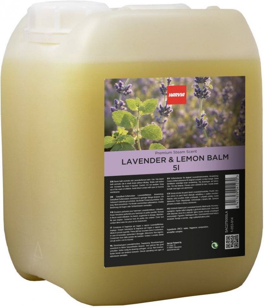 Esence levandule a meduňky 5 l pro parní sauny, podporující relaxaci a klidný odpočinek.Harvia esence do parní sauny levandule a meduňka 5LObjevte kouzlo relaxace a osvěžení s esencí Harvia Premium Steam Scent v jedinečné kombinaci levandule a meduňky. Tato vysoce kvalitní esence je speciálně vyvinuta pro použití v parních kabinách a přináší vám nejen příjemnou vůni, ale také prospěšné účinky na vaše tělo i mysl. S objemem 5 litrů je ideální volbou pro všechny milovníky saunování, kteří chtějí obohatit svůj zážitek o aromaterapeutické prvky.Uvolnění a osvěžení v každém douškuVůně levandule a meduňky je známá svými uklidňujícími vlastnostmi, které napomáhají k harmonizaci těla a duše. Při použití této esence v parní sauně se můžete těšit na okamžité uvolnění napětí a stresu, což vám umožní hlouběji dýchat a prožít chvíle klidu a pohody. Levandule je známá svými relaxačními účinky, zatímco meduňka dodává nádech svěžesti a vitality.Jak používat esenci HarviaEsenci Harvia můžete snadno přidat do vaší parní sauny. Stačí nalít několik kapek esence do vody, kterou používáte pro generátor páry, a nechat se unášet vůní, která vás obklopí při každém nádechu. Díky svému koncentrovanému složení je esence velmi efektivní a vydrží po dlouhou dobu, což z ní činí ideální investici pro pravidelné saunování.Proč zvolit esenci Harvia?Kvalitní složení: Harvia se pyšní vysokými standardy kvality, což zaručuje, že každá kapka esence je pečlivě vyvinuta pro maximální účinnost.Různé účinky: Kombinace levandule a meduňky nejenže příjemně voní, ale také napomáhá k relaxaci, zmírnění stresu a zlepšení spánku.Ideální pro wellness: Tato esence je perfektní volbou pro wellness centra, hotely a soukromé sauny, které chtějí svým zákazníkům nabídnout nezapomenutelný zážitek.Udělejte si čas na sebeNechte se unést vůní levandule a meduňky, která vám přinese klid a pohodu do vašeho každodenního života. S esencí Harvia Premium Steam Scent si můžete užít jedinečný zážitek saunování, který vás osvěží a povzbudí. Nezapomeňte, že péče o sebe a svůj duševní stav je důležitá, a právě tato esence vám v tom může pomoci.Objevte sílu aromaterapie s esencí Harvia a proměňte svoji parní saunu na oázu klidu a relaxace. Objednejte si ji ještě dnes a dopřejte si chvíle plné harmonické pohody!
