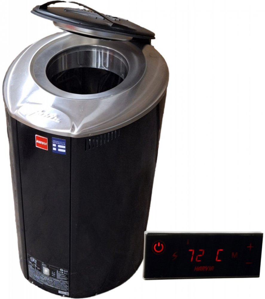Součástí dodávky je externí dotykový ovládací panel, který lze umístit i v sauně. Umožňuje nastavení času sepnutí, času provozu a teploty kamen. Saunová kamna umožňují polévaní vodou.Napájecí napětí - 400 V 3N. Velmi kvalitní zpracování, testovaný výrobek. Saunová kamna jsou vyrobena z nerezavějící oceli - černá barva. Harvia Forte jsou moderní verzí kamen akumulujících teplo. Díky unikátnímu designu a technologickému řešení jsou Forte těmi nejlepšími mezi kamny využívající stejný postup. Kamna jsou ideální pro rodinnou saunu, nebo pro malé penziony s nepravidelným denním provozem sauny. Kamna jsou ideální pro finskou saunu, kde se teplota pohybuje kolem 70 ºC a panuje zde velká vlhkost. Saunu sice nevytopí na 100 ºC , ale díky velké vlhkosti zažijete tropickou, přitom jemnou saunu, čili typickou finskou saunu. Kamna poskytují zcela odlišný komfort při vytápění sauny - jakmile se spirály roztopí, mají spotřebu jako jediná 50 wattová žárovka, takže můžete mít kamna zapojená klidně celý den. Když se poté rozhodnete saunovat, jednoduše otevřete poklop a za 10 - 15 minut máte saunu vytopenou (nemusíte čekat na vytopení hodinu a půl). Díky této technologii nedochází k neustálým změnám teplot spirál, které poté vydrží daleko delší provoz. Množství kamenů max. 100kg. Kameny se automaticky přidají do košíku za zvýhodněnou cenu. Kamna naleznou vhodné umístění v dobře zaizolovaných saunách - dostatečná izolace zvýrazní nízkou spotřebu. Ovládání kamen je zajištěno pomocí externího podsvíceného ovládacího panelu, který je součástí dodávky a je uzamykatelný, což zvláště oceníte v přítomnosti dětí.