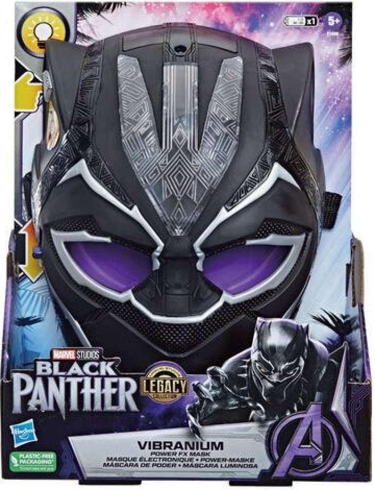 Black Panther, vybavený technologií Vibranium, chrání království Wakanda! Hrdina. Legenda. Král. Oslavte nezapomenutelné okamžiky z filmu Marvel Black Panther s hračkami na hraní rolí z Marvel Studio Legacy Collection. Děti od 5 let mohou znovu vytvořit vzrušující scény z filmu Marvel s hracími předměty Black Panther, které mají design s filmovou tématikou. Existují další hračky Black Panther z Legacy Collection od Marvel Studios, které znovu vytvoří akční dobrodružství Black Panthera. (Každá se prodává samostatně. V závislosti na dostupnosti.) S maskou Vibranium Power mohou fanoušci převzít roli Black Panthera. Zaujme pulzujícími a konstantními světelnými efekty a fantastickým designem inspirovaným filmem. Jednoduše stiskněte tlačítko na masce a aktivujte pulzující světla. Druhým stisknutím tlačítka se aktivuje stálé svícení. WAKANDA NAVŽDY!