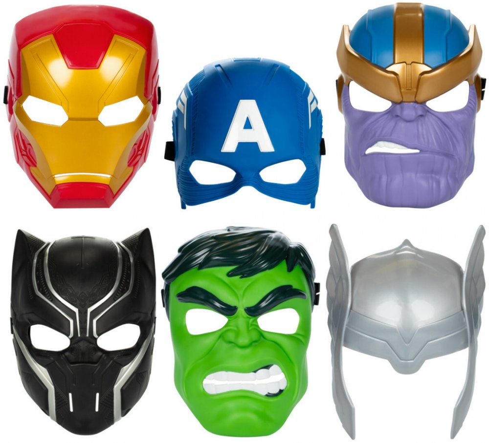 Představte si, že máte sílu jako Hulk, svaly jako Kapitán Amerika, královský původ jako Thor anebo železné pěsti jako Iron Man. S touto maskou inspirovanou Avengers hrdiny, můžete být kýmkoli z Marvelovského vesmíru. Díky nastavitelnému pásku padne každému smrtelníkovi. Každý maska se prodává zvlášť.