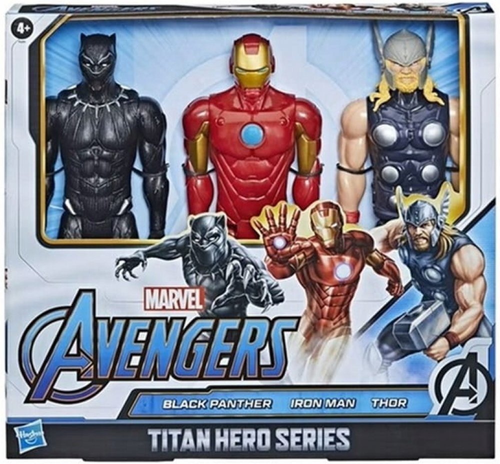 Avengers - nejoblíbenější postavy z komiksového světa Marvel. Sada 3 akčních figurek z řady Titan Hero Series (licence Marvel). Balení obsahuje 3 figurky 30 cm: - Iron Man - Thor - Černý Panter (Black Panther) Figurky jsou detailně propracované, máji pohyblivé části těla. Každá figurka měří zhruba 30 cm. Věk: 4+ Materiál: plast Značka: HASBRO