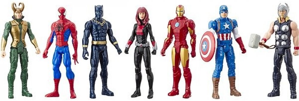 Figurky Avengers Titan Hero představují detailně zpracovanou sadu sedmi akční postav superhrdinů z filmové série Avengers. V sadě se nachází například postava Iron Mana, Thora, Black Pantera či Spidermana. Figurky od společnosti Hasbro jsou vysoké přibližně 30 cm a vyrobeny z odolného plastu. Disponují pohyblivými částmi, s nimiž lze postavy nastavit do různých akčních póz. Sada je vhodná pro děti...