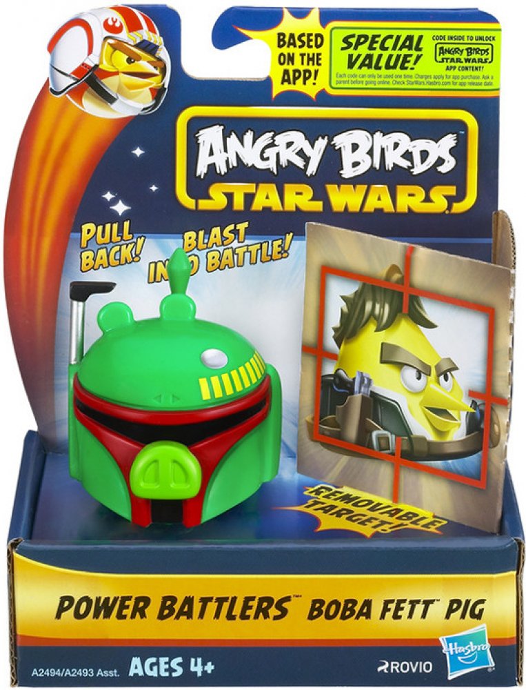 Nová hra se STAR WARS ANGRY BIRDS! Zatáhněte a pusťte STAR WARS ptáka do souboje. Ptáci mohou mít podobu oblíbených postav ze STAR WARS, např. Luka , Sola nebo Darth Vadera , a jsou dodáváni s kartonovým terčem, do kterého se můžete strefovat.