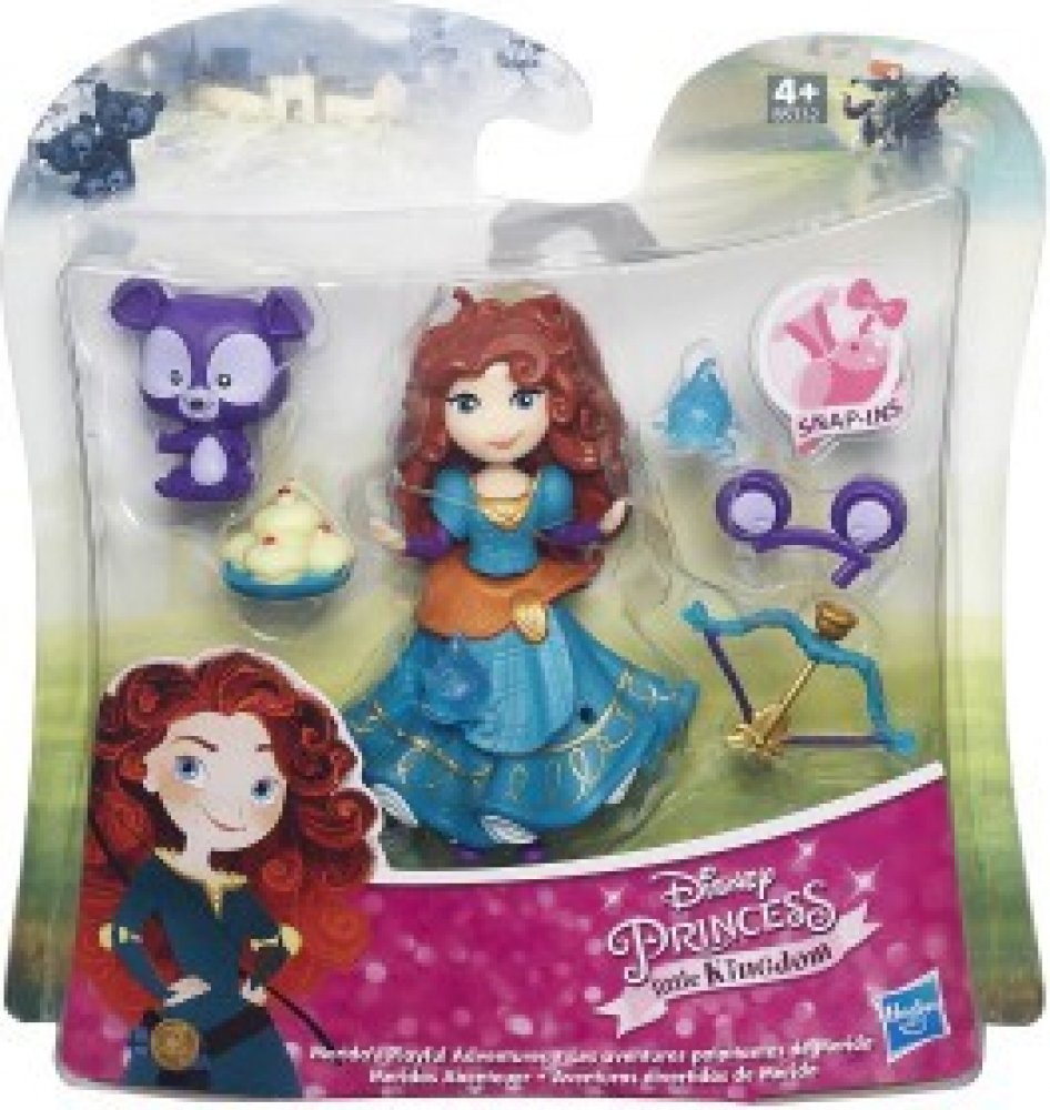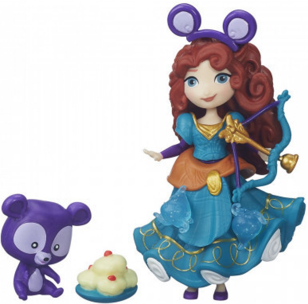 Disney Princezna a kamarád. Popelka má na sobě odnímatelnou plastovou sukýnku, peplum a živůtek, a je v balíčku doplněna o Guse. Gus může sedět v koši se šicími nástroji. Sada také obsahuje čajový podnos s konvicí pro zábavný čajový dýchánek! Rozkošná panenka Merida má na sobě plastovou sukýnku, peplum a živůtek a je v balíčku doplněna o svého medvědího bratra, který může lapat pamlsky svým bříške...