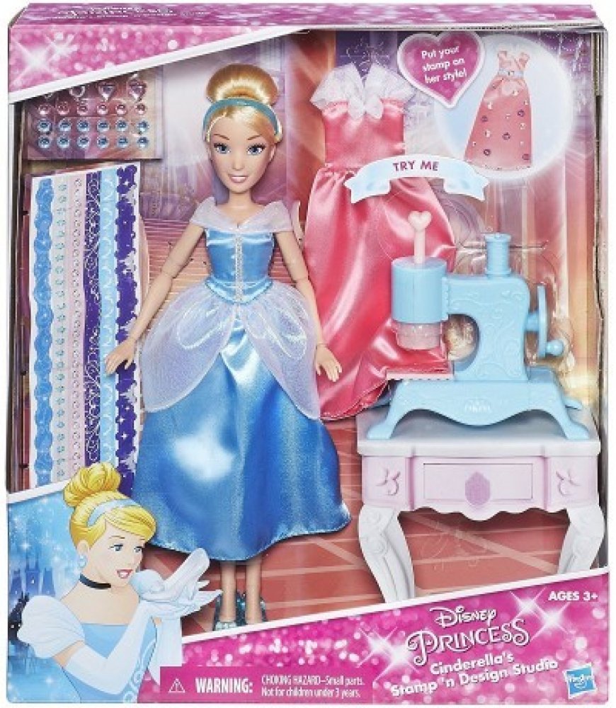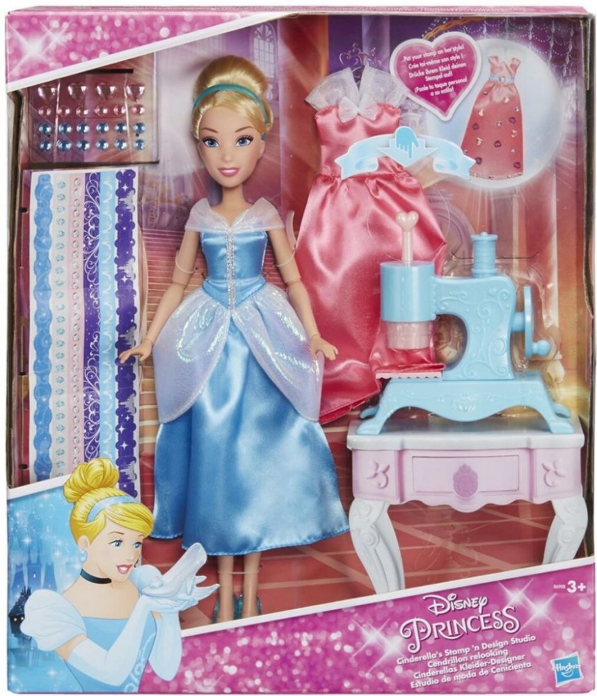 Popelka je připravena pro prince a vaše malá princezna může pro ni vytvořit nové styly na šicím stroji pomocí samolepek a drahokamů. Z jejích šatů se stanou třpytivá mistrovská díla. Panenka má dvoje šaty pro více módní pohádkové zábavy!
