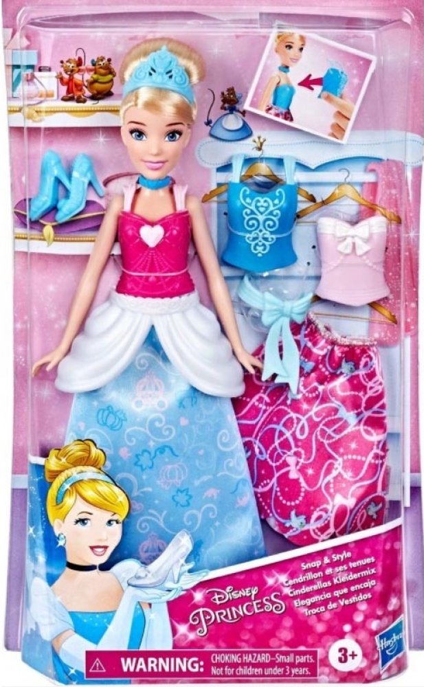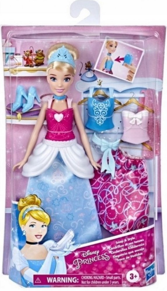 Disney Princezna Popelka má vílí kmotřičku, která ji pomáhá v přípravách na bál. Každý si teď může hrát, že jako kmotřička pomáhá této Snap and Style Popelce. Tato úžasná princezna od Disney přichází s třemi odjímatelnými topy a dvěma sukýnkami. Součástí balení je také korunka, peplum, pásek s mašlí, náhrdelník a střevíce.