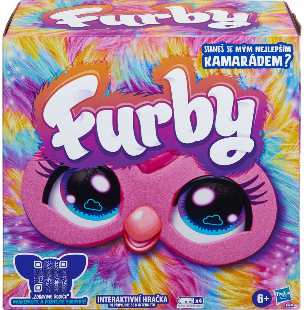 Furby se vrací – tentokrát v českém jazyce a s ještě větší dávkou zábavy! Furby se vrací – tentokrát v českém jazyce a s ještě větší dávkou zábavy! Tento interaktivní plyšový kamarád reaguje na hlas, dotyk, pohyb i péči a nabízí přes 600 českých frází, písniček, vtipů a zvuků. Díky 5 hlasovým příkazům se přepíná do různých herních režimů."Taneční párty" přehraje různé písničky a začne tancovat. "Světelná show" reaguje na dotek a rozsvěcí barevná světla. "Opičení se" opakuje, co říkáte, a to až v 6 legračních hlasech. "Řekni, co mě čeká" odpovídá vtipnými věštbami. "Chci pohodičku" učí dechová cvičení a říká pozitivní věty. Furby reaguje na hlazení, objetí, krmení (pizza tagem nebo prstem), třesení a česání. Čím více si s ním děti hrají, tím více funkcí se odemkne. Součástí jsou také stylové korálky k ozdobení Furbyho i jeho majitele.Rozměry balení: 22,86 × 22,86 × 12,7 cm.Napájení: 4× AA baterie (nejsou součástí balení).Věk: od 6 let. Hračka nevyžaduje internetové připojení.