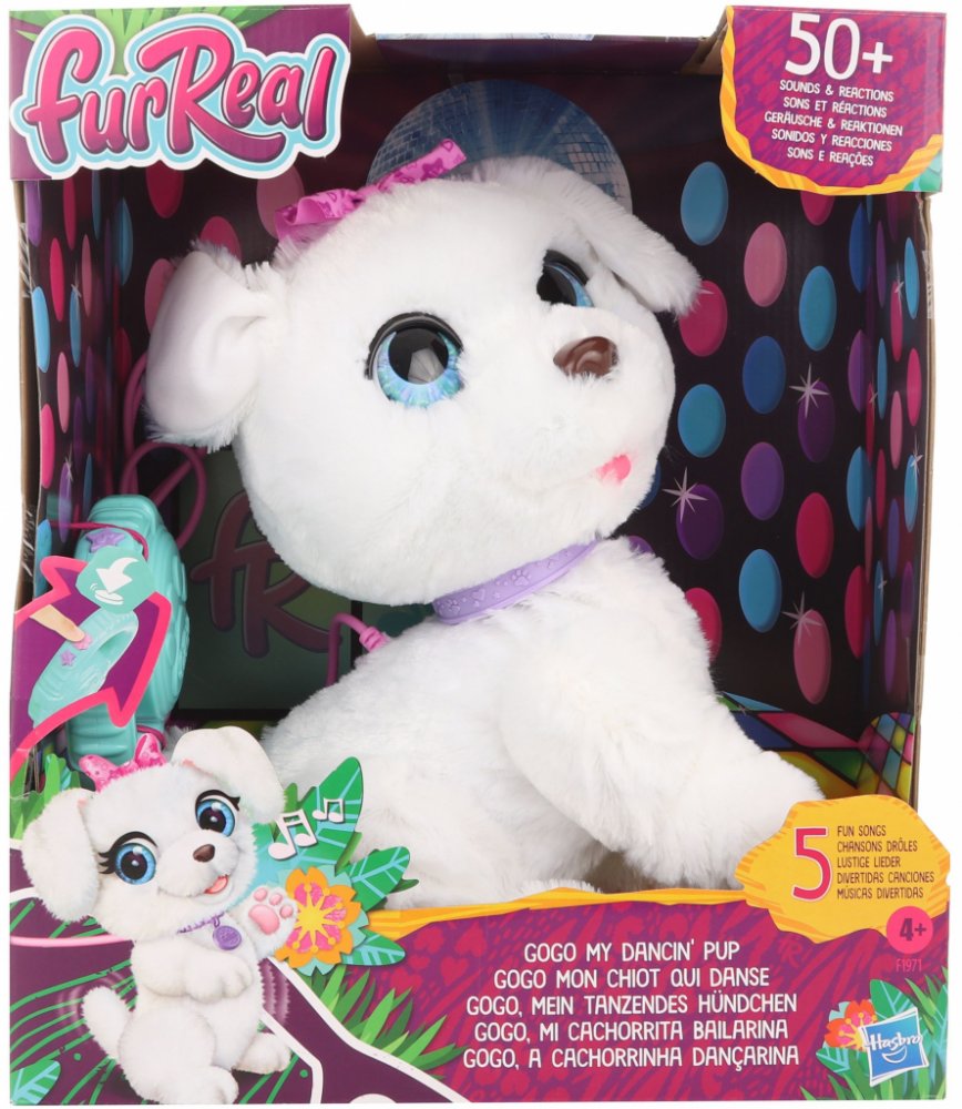 Oblíbené chodící štěňátko, nyní s hudebním doprovodem!. GOGO, Tancující štěně chodí, tančí a hraje jedinečné písničky. Díky speciálnímu vodítku můžeš brát GOGO na procházku nebo začněte tančit na jednu z jejích písniček. Tancujeme všichni! Vyžaduje 4 AA baterie, baterie jsou součástí balení.