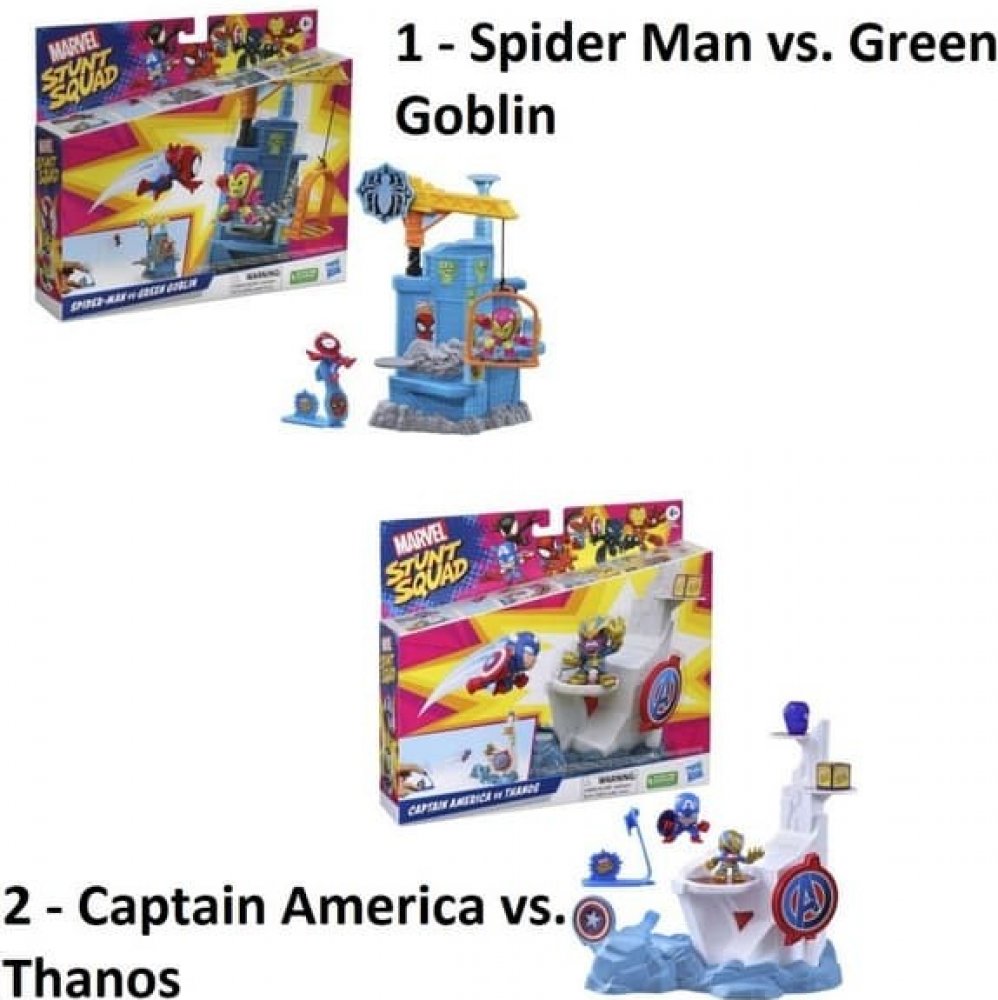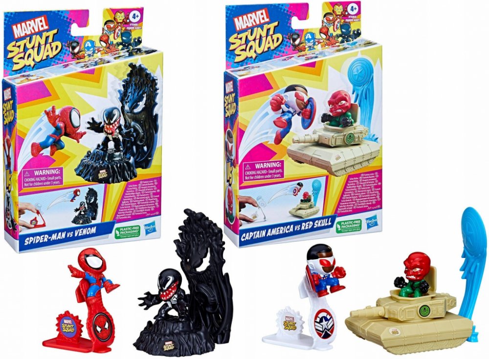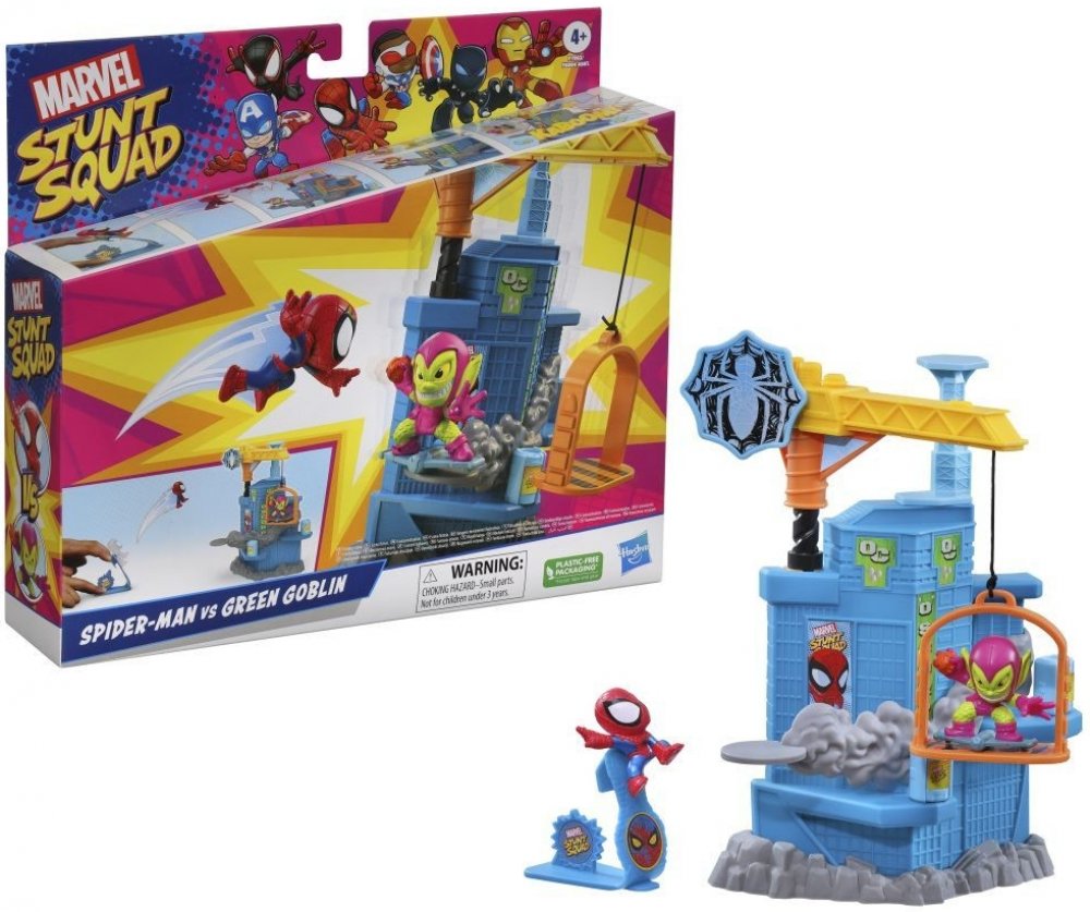 Umístěte akční figurku superhrdiny Marvel Stunt Squad na odpalovací zařízení, zamiřte na cíl a vypusťte hračku do akce pro zábavu s nárazy a údery.