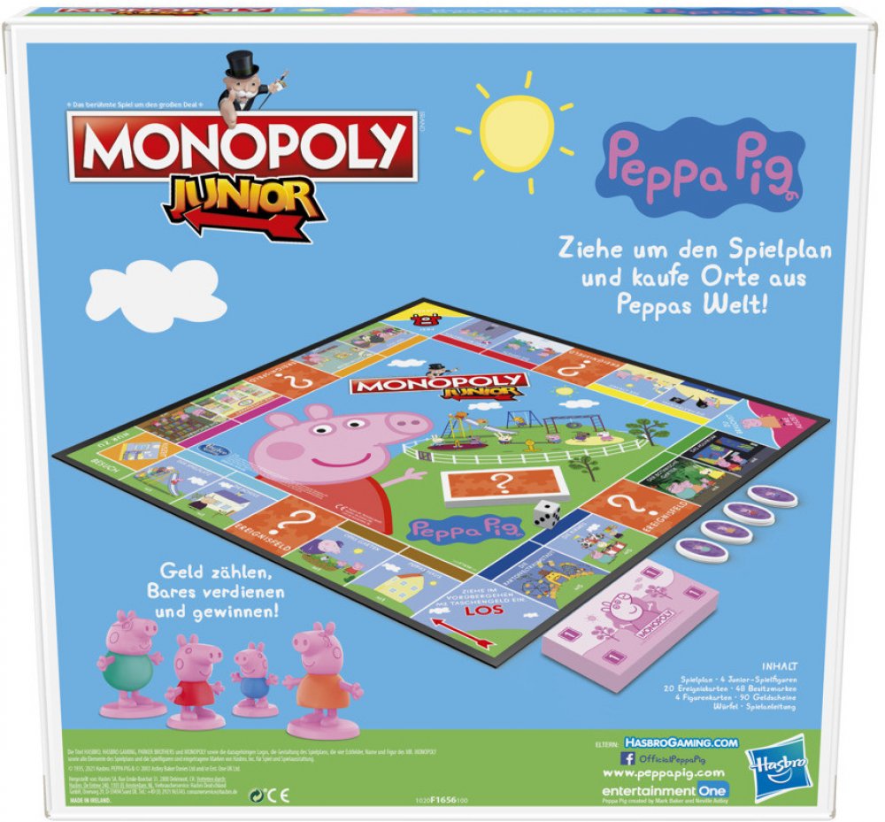 Užijte si zábavnou hru Monopoly Junior v roztomilém provedení inspirovaném populárním dětským seriálem Prasátko Peppa. Děti si mohou vybírat z jejich oblíbených postaviček a objevovat ikonická místa ze světa Peppy a jejích přátel. Hra je přizpůsobena mladším hráčům, nabízí jednoduchá pravidla a podporuje rozvoj počítání i strategického myšlení.