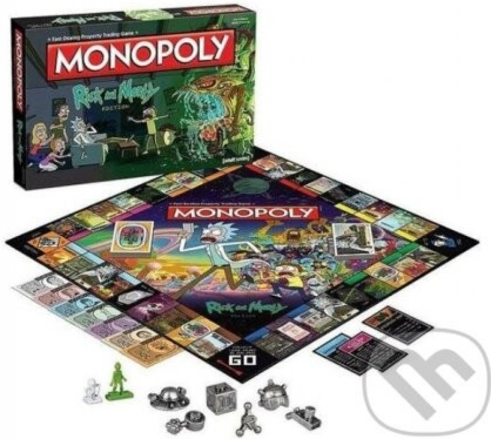 Užijte si neuvěřitelná místa z mezidimenzionálního světa arogantního vědce Ricka a jeho vnuka Mortyho. Na výběr máte lokality od světa ptačích lidí až po citadelu Ricků, máte-li dost Flurba, můžete si je zakoupit a následně na nich vydělávat, jestli na ně vstoupí vaši spoluhráči. Pokud zkompletujete všechny od jedné barvy, můžete na těchto pozicích stavět Gooble boxy, které vám zajistí vyšší příjem. Po postavení čtyř boxů, můžete nasadit Flooble Cranka. Zároveň nesmí chybět akční karty Mezidimenzionální satelitní televize a karet Get schwifty, které vás jistě nabudí do dobré nálady. Obsahuje i tématické figurky, které perfektně dokreslí dokonalou atmosféru hry. Můžete si vybrat odznak Rady Ricků, Meeseeks Box, Portal Gun, Plumbus, Rickovu loď a Snuffles přilbu. Hra je v anglickém jazyce a obsahuje: • 6 figurek • 28 nájemních karet • 16 karet Mezidimenzionální satelitní televize • 16 karet Get schwifty • 32 Gooble boxy • 12 Flooble Cranks • 2 kostky • balíček peněz Flurbo • návod ke hře