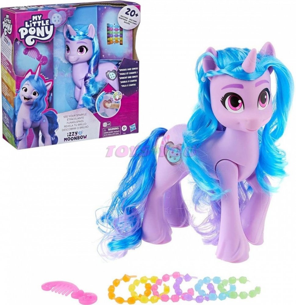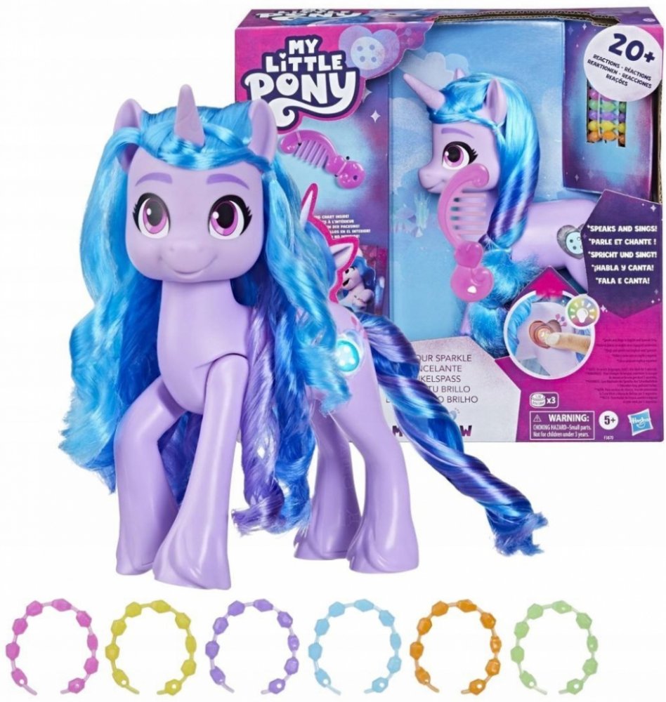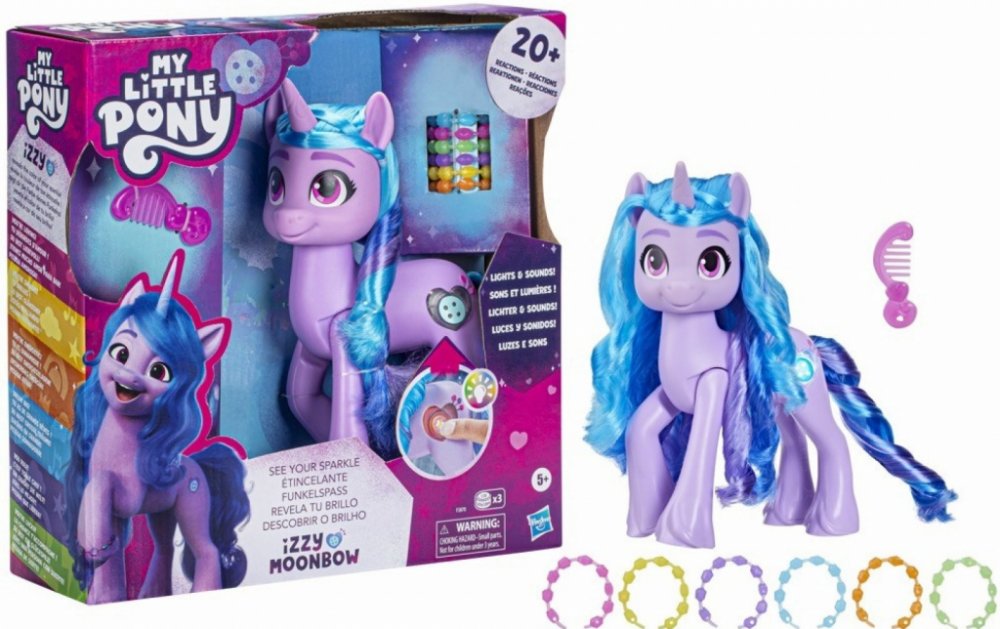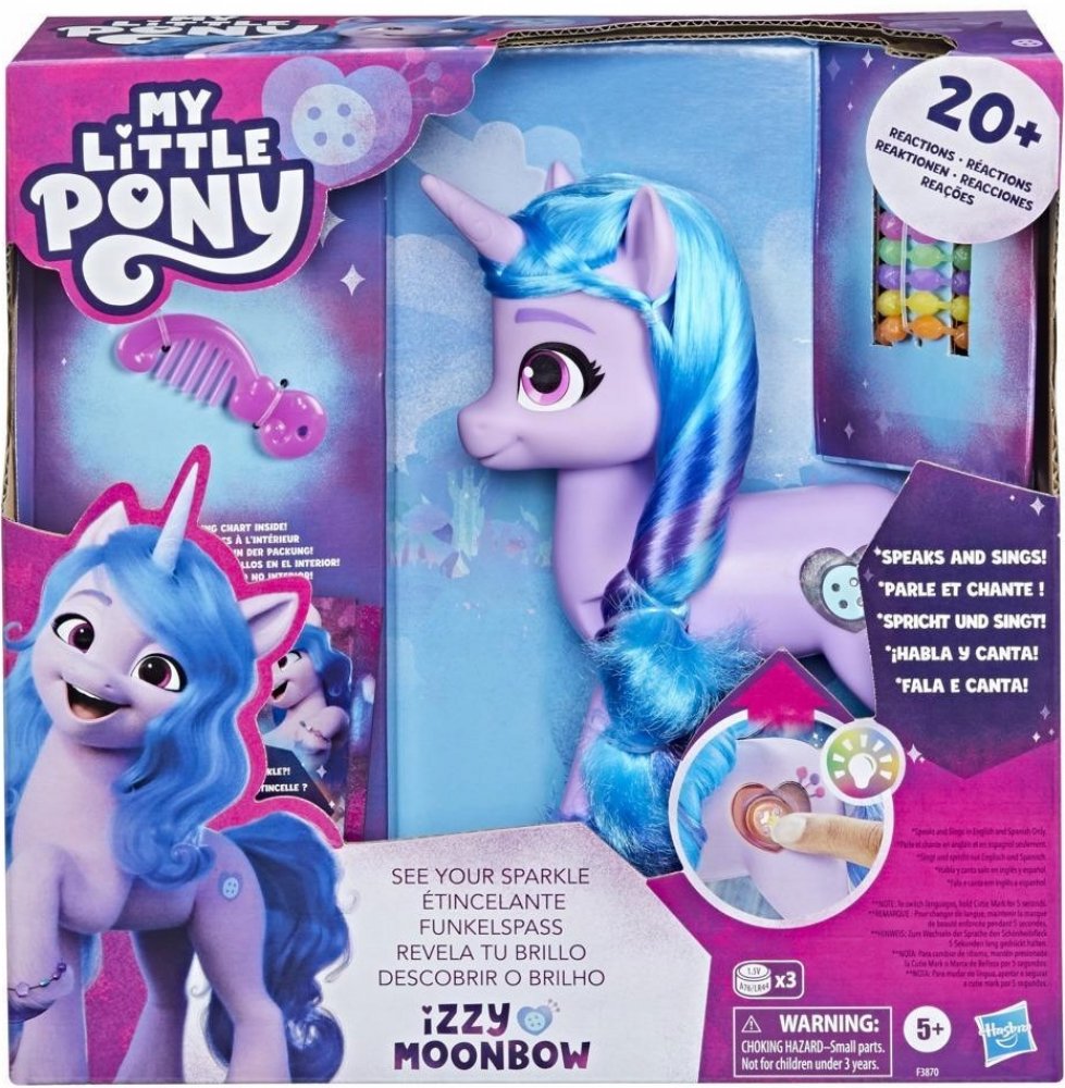 Co vaše jiskra? Jakou má dneska barvu? Pojďte to zjistit s Izzy a jejími jednorožčími kouzly! Tahle figurka přináší světelné, zvukové a hudební efekty a spoustu hlášek. Když stisknete její Cutie mark,