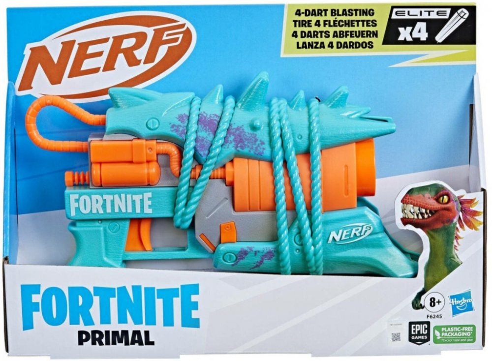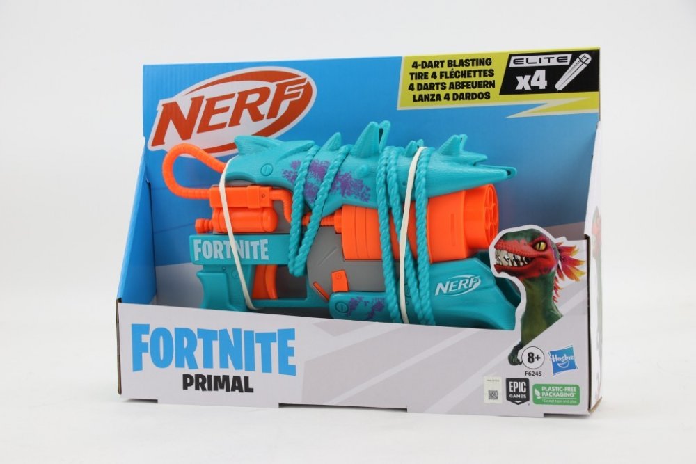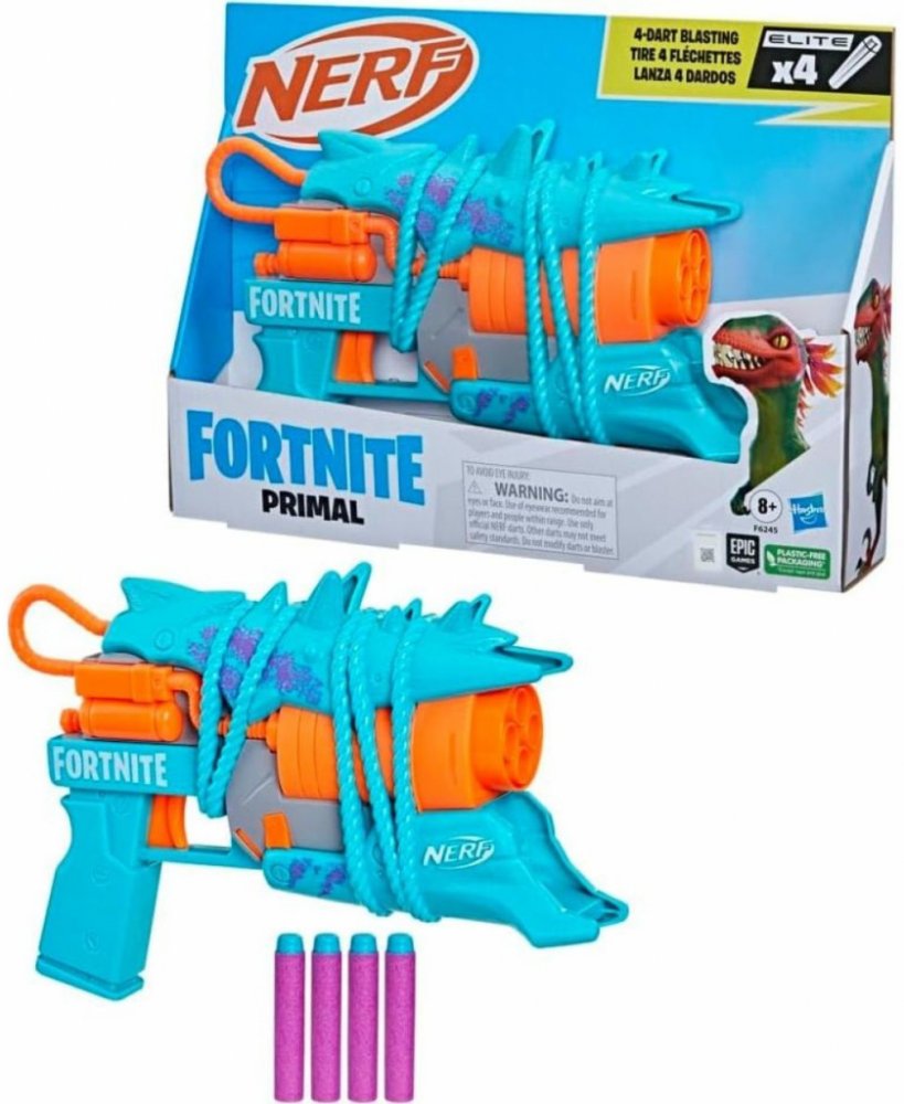 HASBRO NERF Fortnite Primal herní set dětská zbraň blaster + 4 soft pěnové náboje Elite.