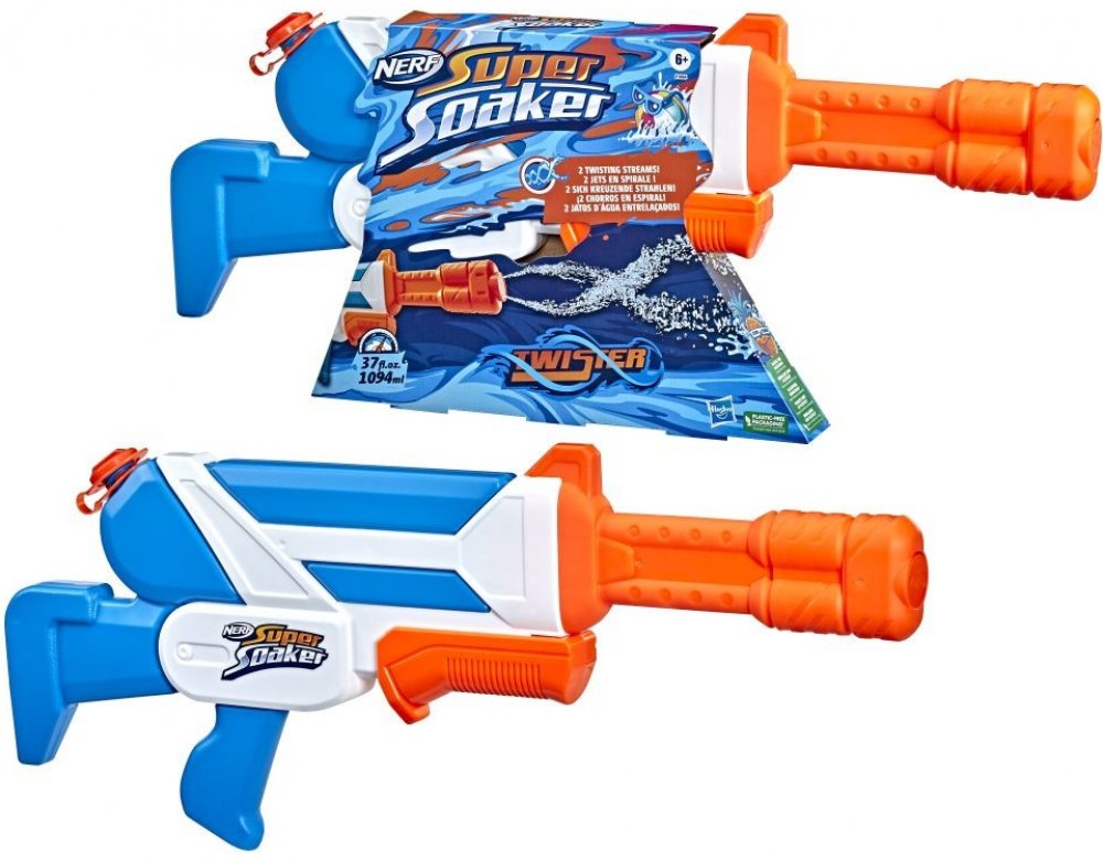 Podrobnosti o produktu 14F3884 Rozbalte to s vodními blástry Nerf Super Soaker! Tyhle venkovní hračky nejsou jen pro děti, skvěle se s nimi vyřádí i dospělí. Na co ještě čekáte? Honem je běžte naplnit a hurá do akce! Zaskočte své protivníky 2 točícími se proudy vody. Blástr Nerf Super Soaker Twister je totiž vybaven 2 rotujícími hlavněmi. Proud vody z každé hlavně se otáčí tam a zpátky, aby protivník dostal zásah dvojitou spirálou vody. Stačí otevřít uzávěr, naplnit vodou a začít pumpovat.