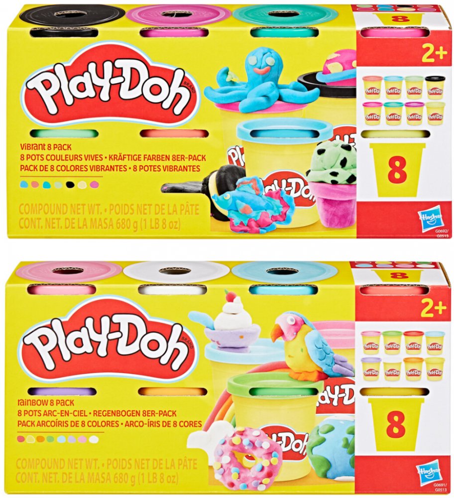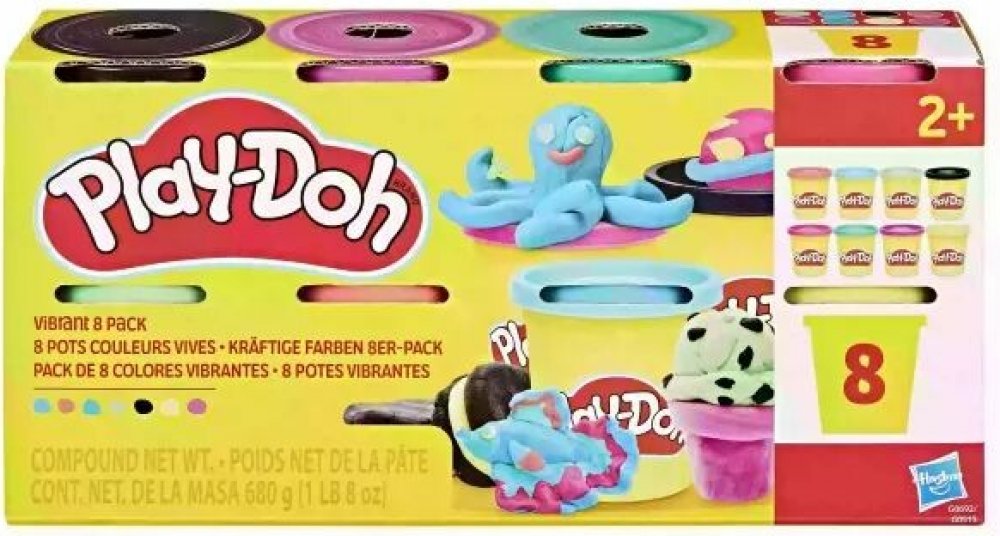 Balíček obsahuje 8 různých barev modelíny Play-Doh, každá dóza o hmotnosti 85 gramů. Rozmanitost barev umožňuje dětem uvolnit svou fantazii a tvořit různé tvary a postavičky.