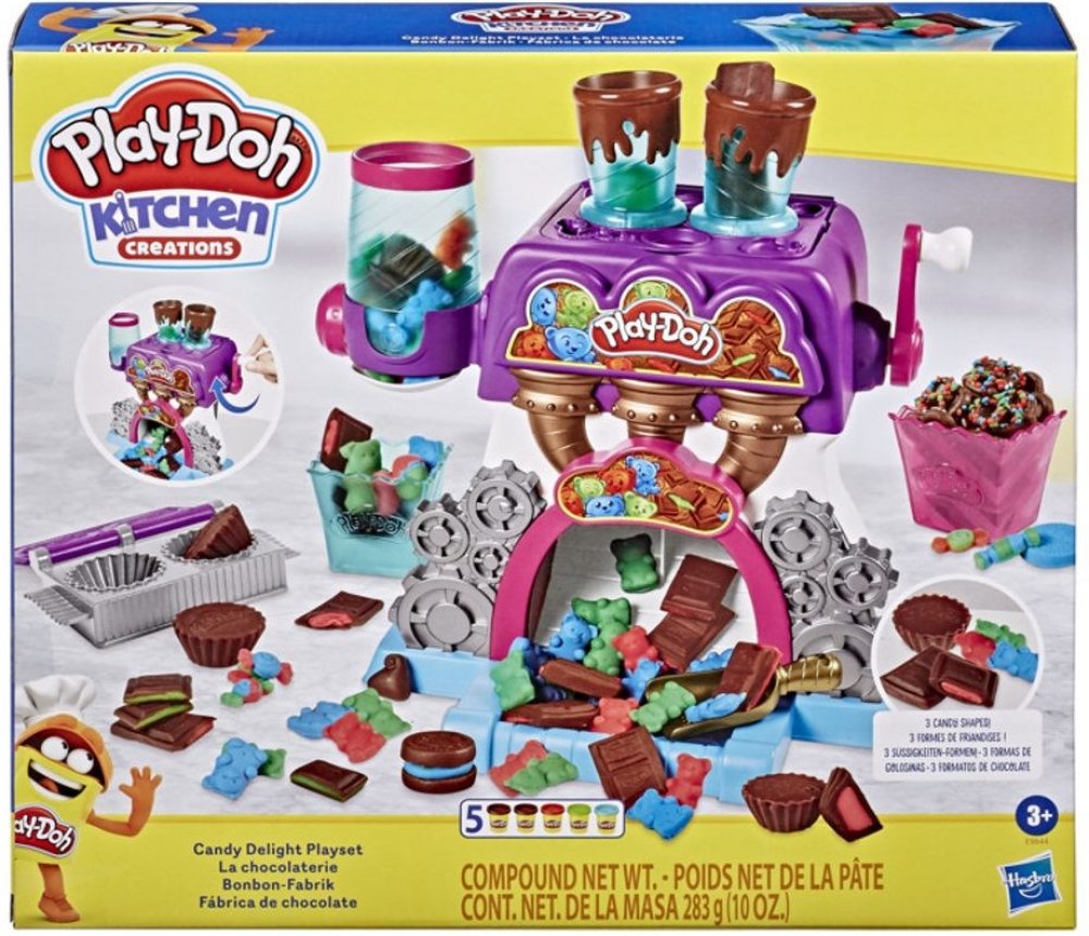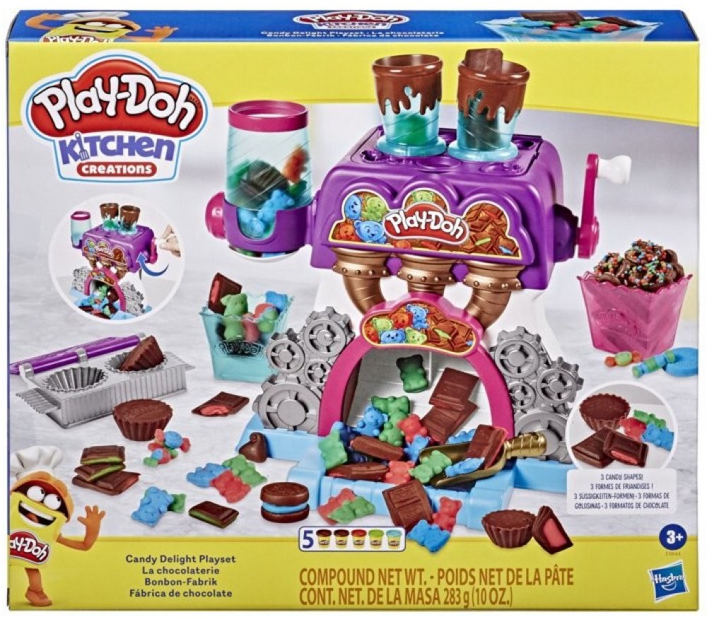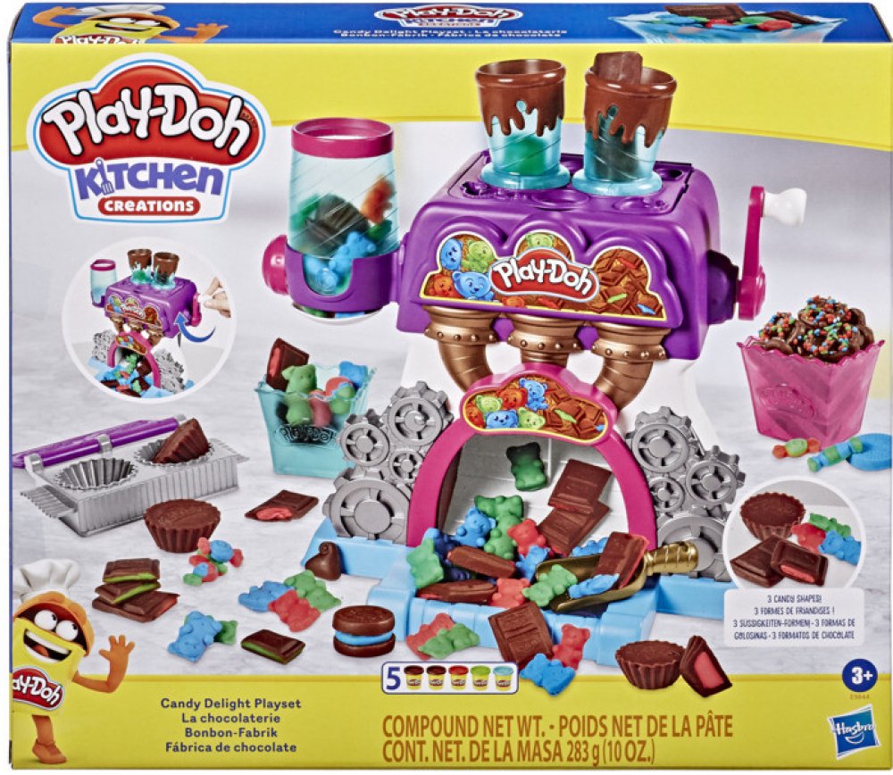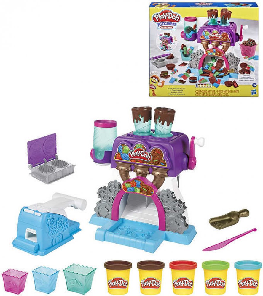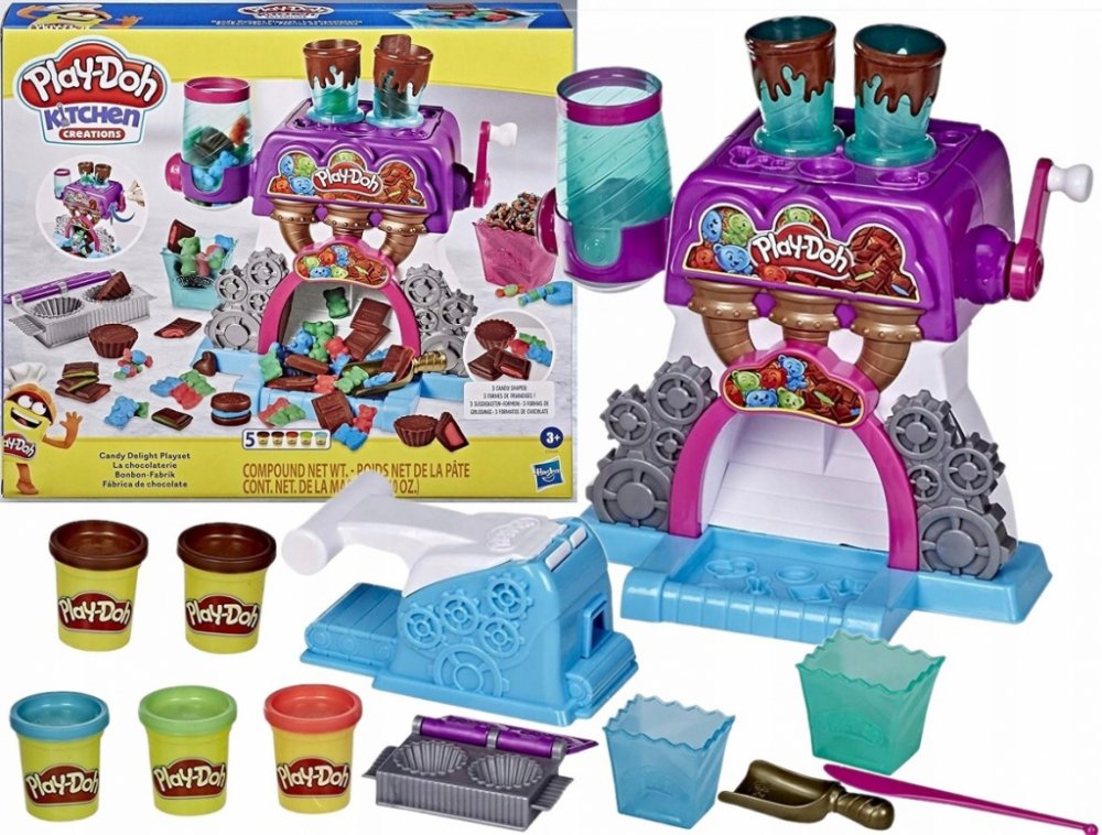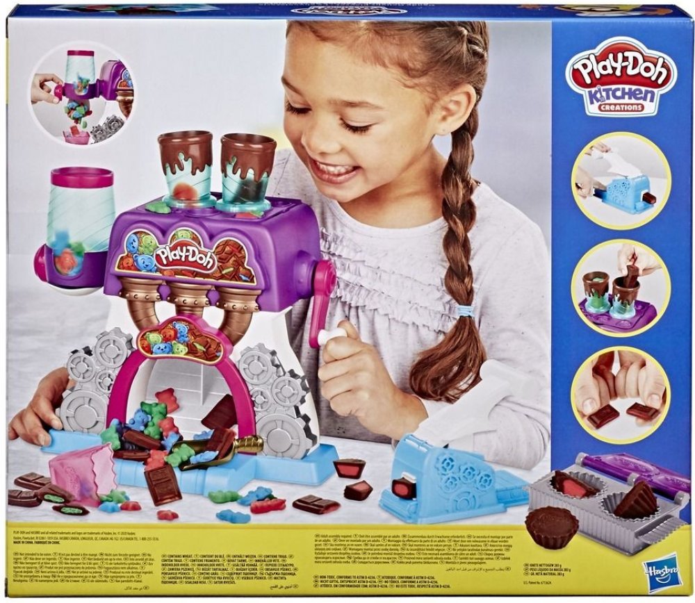 S novou hmotou Play-Doh Candy si vyrobíte všemožné pochoutky ozdobené jako nikdy předtím. Výborné plněné čokoládové bombóny ti budou padat přímo do misky.