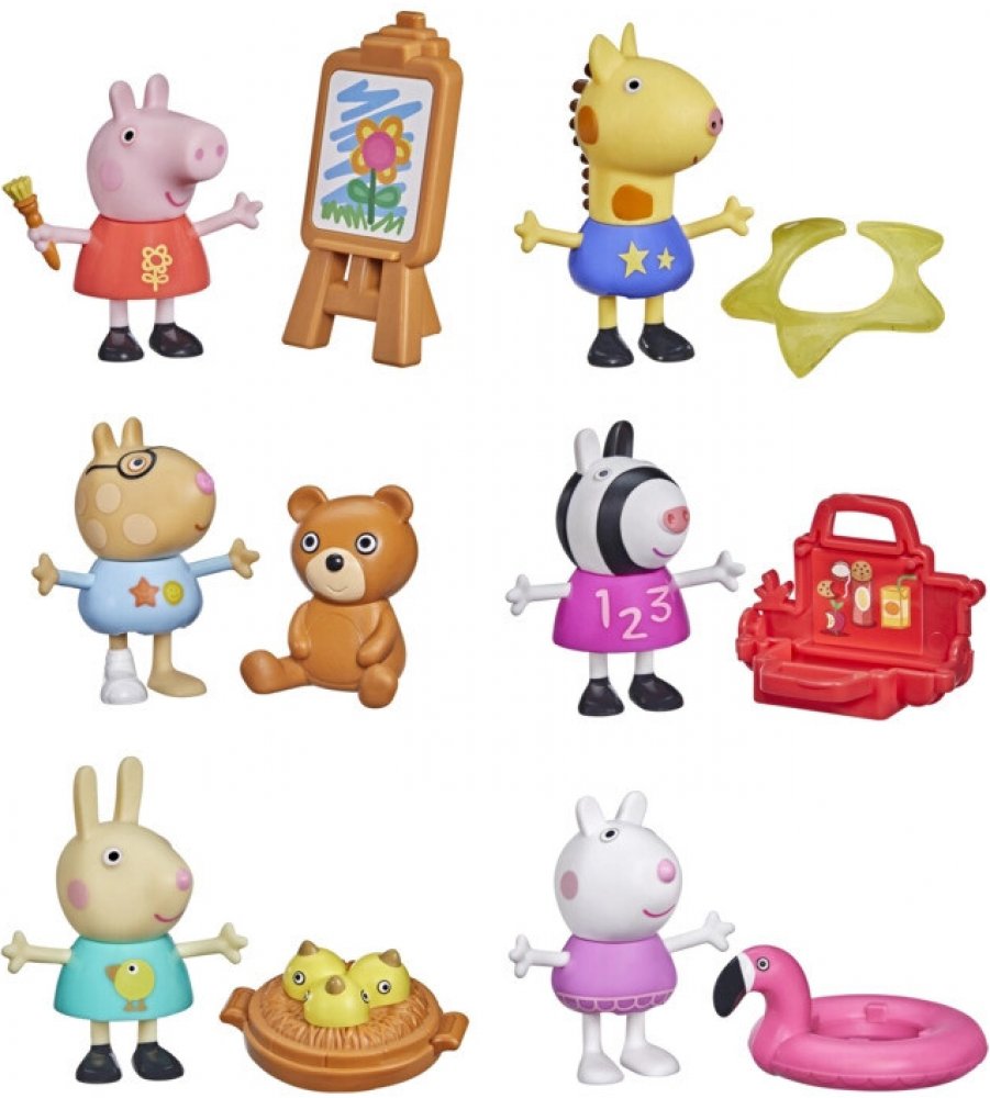 Úžasná postavička z kolekce Prasátko Peppa. Figurka má vždy u sebe doplněk, který je pro mni typický. Užijte si zábavu s prasátkem Peppou a jejími přáteli.
