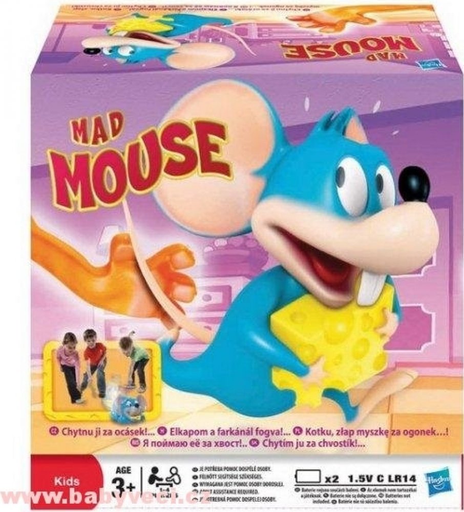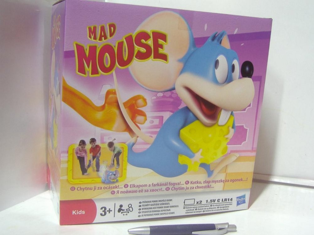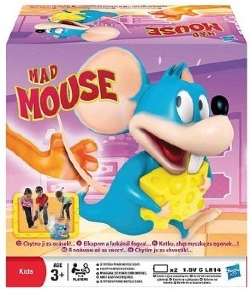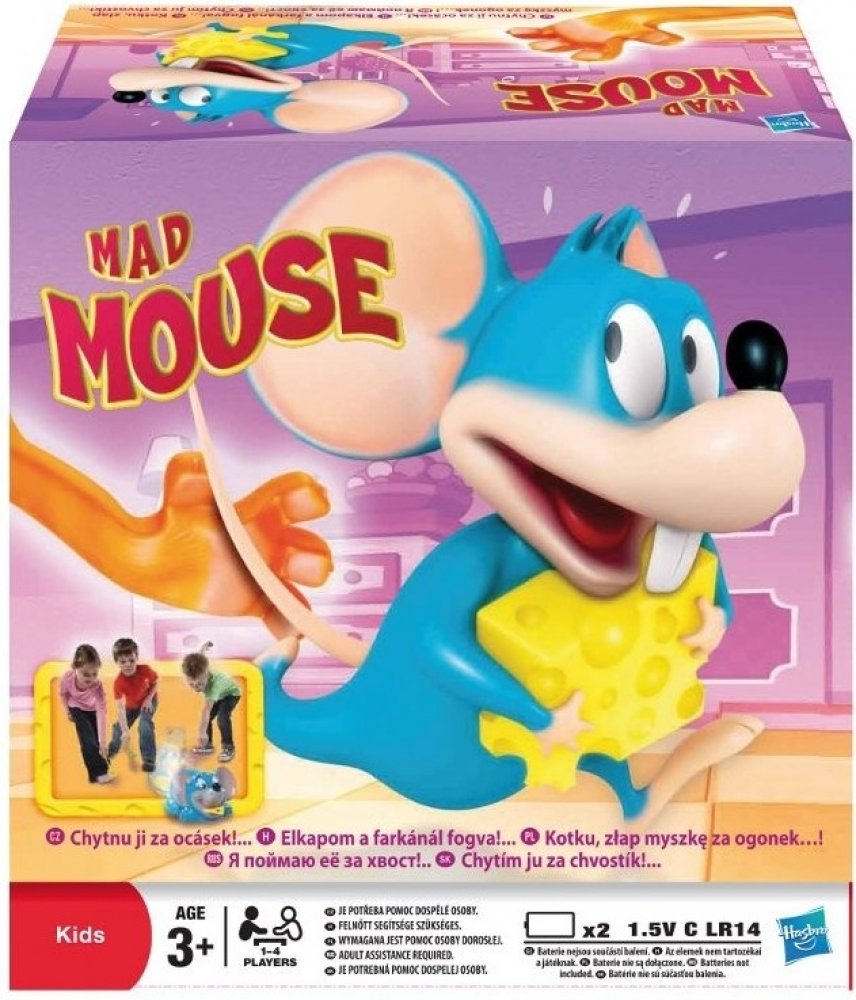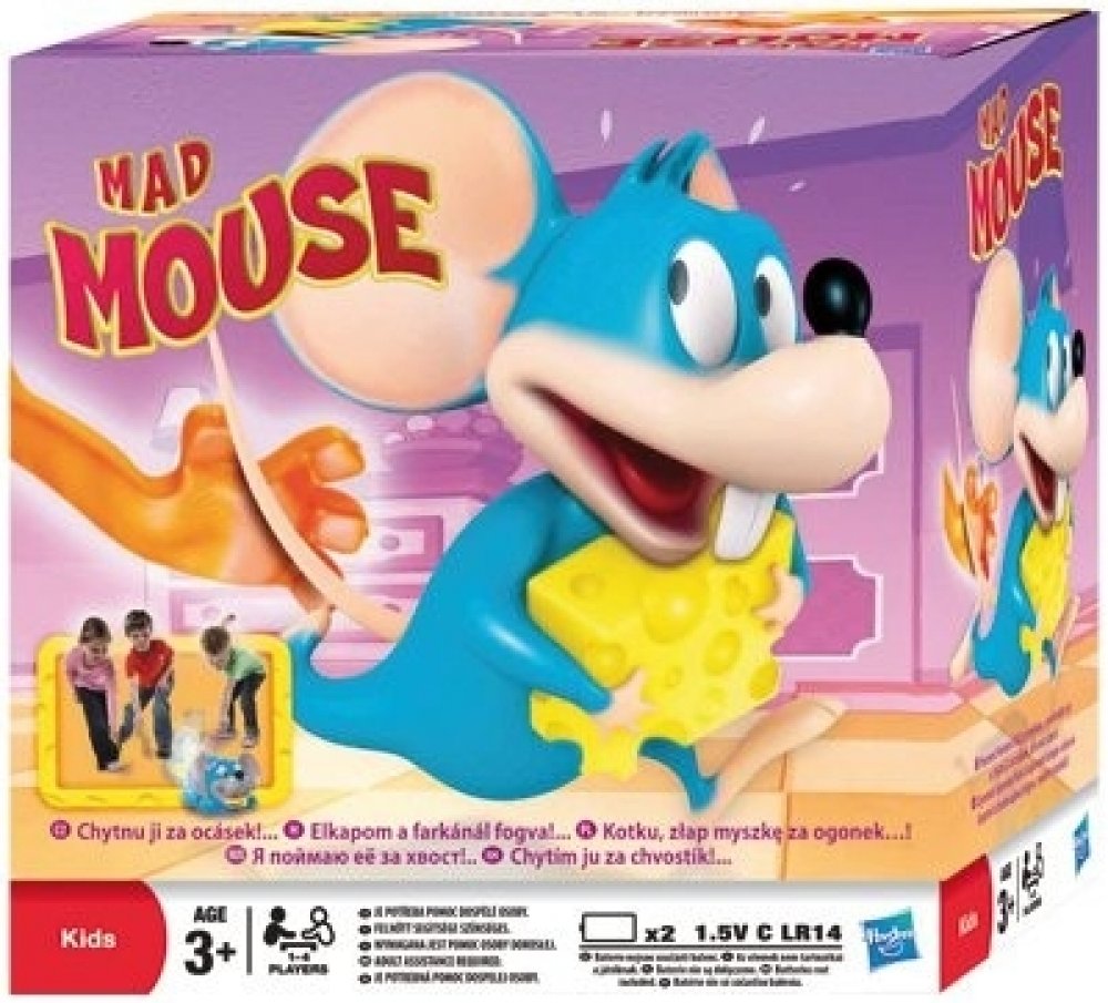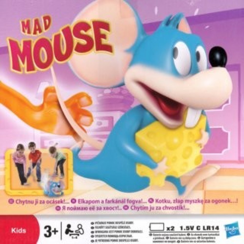 Hasbro šílený myšák Novinka 2012 Zábavná a pohotová dětská hra. Rošťácká myška krade kousky sýra kocourovi přímo pod nosem. Vykutálená hra, u které se děti nasmějí. Utíkají za myškou a chytají ji kočičí packou za ocásek dříve, než jim uteče! Vítěz má nejvíce sýrů. První, kdo myšku chytí, dostane kousek sýra a může ho nasunout na svou packu. Nasbírejte jich nejvíce a vyhrajte. Hra je určena pro 1 a...