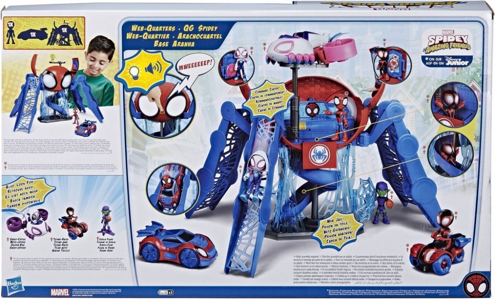 SAF PAVOUČÍ ZÁKLADNA Zažijte pořádné pavoučí dobrodružství s touto hrací sadou Pavoučí základny, která je inspirována seriálem Spider-Man a jeho úžasní přátelé na Disney Junior! Tuto neskutečnou Pavoučí základnu uvidíte v každém díle seriálu. Vypadá jako obrovitánský pavouk, má čtyři obří nohy, které můžete jednoduše ohýbat, a vytvářet tak plošiny, na kterých budou parádně brzdit vozidla. Pavoučí ...
