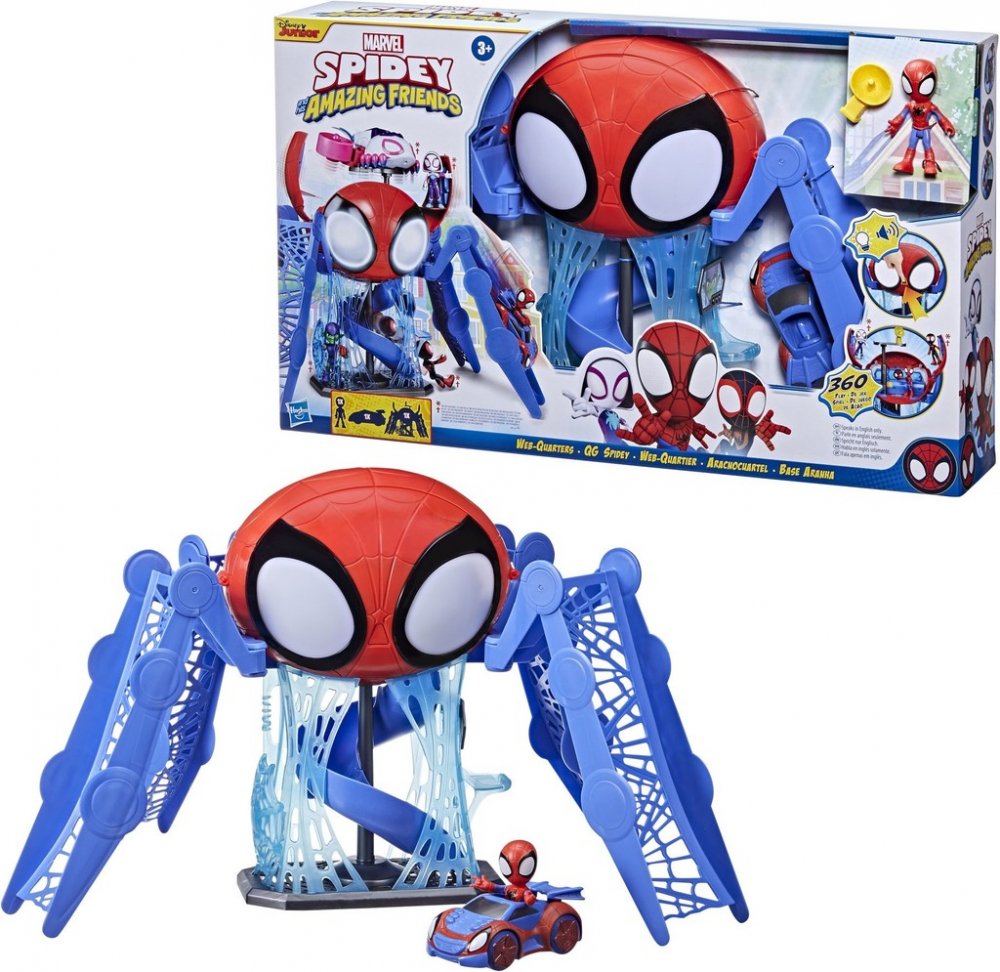 SAF PAVOUČÍ ZÁKLADNA Zažijte pořádné pavoučí dobrodružství s touto hrací sadou Pavoučí základny, která je inspirována seriálem Spider-Man a jeho úžasní přátelé na Disney Junior! Tuto neskutečnou Pavoučí základnu uvidíte v každém díle seriálu. Vypadá jako obrovitánský pavouk, má čtyři obří nohy, které můžete jednoduše ohýbat, a vytvářet tak plošiny, na kterých budou parádně brzdit vozidla. Pavoučí základna, která má světelné a zvukové funkce, je kompatibilní s dalšími vozidly ze seriálu Spider-Man a jeho úžasní přátelé. Každá postava si tu najde své jedinečné místo, například pavoučí laboratoř, pracovnu detektiva nebo třeba vězení. Pro Spider-Mana a jeho přátele tu zkrátka bude plno místa na řešení společných misí! Hrací sada obsahuje figurku Spider-Mana o velikosti 10 cm a pavoučí motocykl. Parametry: Výrobce: Hasbro Určeno pro kluky Věk: 3+ Je čas na Spidermana! Spidey a jeho úžasní marvelovští přátelé jsou ještě mocnější, když spolupracují jako úžasný Spider Team! Ale někdy i ten nejlepší tým potřebuje pomocnou ruku; tehdy je dobré mít spojence, jako je Captain Marvel, Black Panther, a dokonce i Hulk! Být superhrdinou je těžké, ale pomáhá, když máte takové úžasné přátele! Tvůj pavoučí smysl signalizuje tuto hrací sadu Web-Quarters, která se propojuje s aktivitami Spideyho a jeho přátel; tento pavoučí uzel jako by ožil pavoučí řečí, svítícíma očima a spoustou parádních zákoutí, která poskytují spoustu pavoučí zábavy! Zažij opravdové pavoučí dobrodružství s touto hravou pavoučí základnou inspirovanou seriálem Spider-Man a jeho úžasnými přáteli z Disney Junior! Tuto neuvěřitelnou pavoučí základnu uvidíte v každém díle seriálu. Vypadá jako obří pavouk, má čtyři obrovské nohy, které můžeš snadno ohýbat a vytvářet tak plošinky se skvělými brzdnými vozidly. Pavoučí základna se světelnými a zvukovými funkcemi je kompatibilní s dalšími vozidly ze seriálu Spider-Man a jeho úžasní přátelé. Každá postava zde najde své jedinečné místo, například pavoučí laboratoř, detektivní pracovnu nebo vězení. Spider-Man a jeho přátelé zde budou mít plno míst pro společné řešení misí! Hrací sada obsahuje 10 cm Spider-Mana a pavoučí motorku. Číslo oddílu