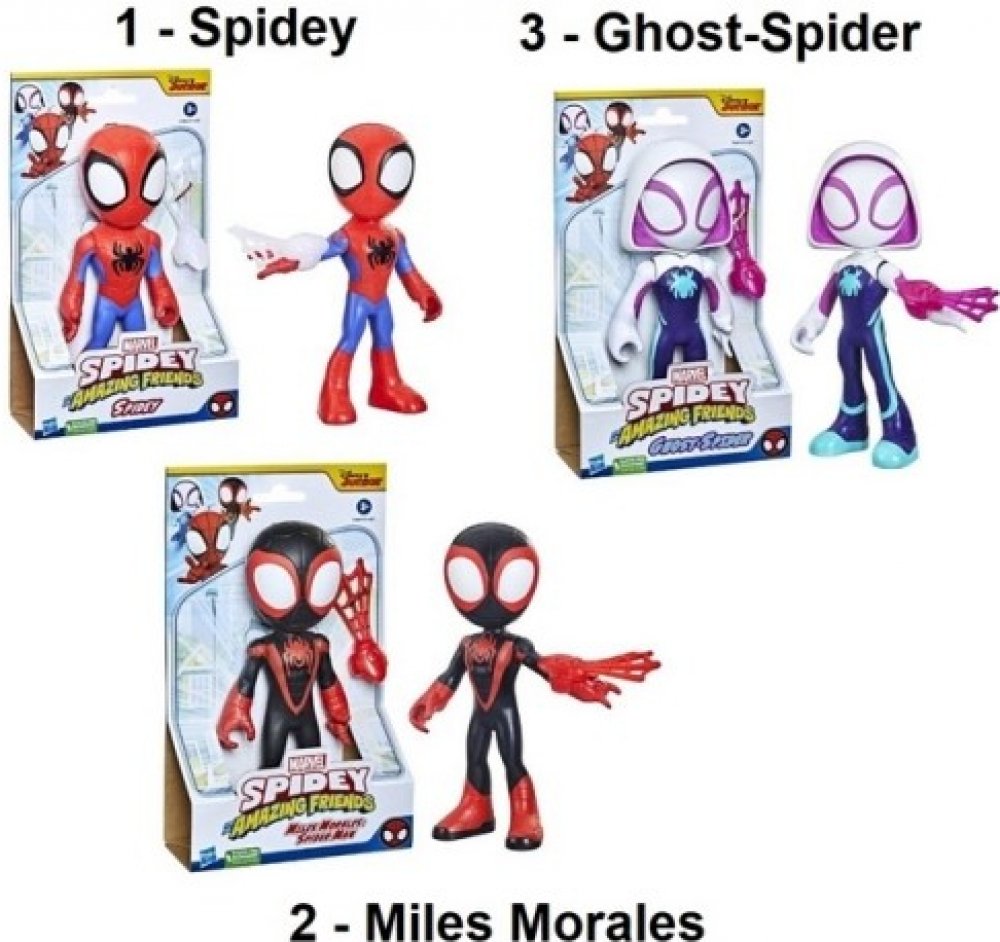 Figurka inspirovaná seriálem Spider-Man a jeho úžasní přátelé je vysoká přibližně 23 cm a je určená dětem od 3 let. Předškoláci si s těmito mega figurkami hravě poradí a budou se skvěle bavit. Stanou se součástí Spideyho týmu a se Spideym, Ghost-Spiderem a Milesem Moralesem zažijí neuvěřitelné věci. Figurky mají pohyblivou hlavu, pas i ruce a dají se nastavit do různých poloh.