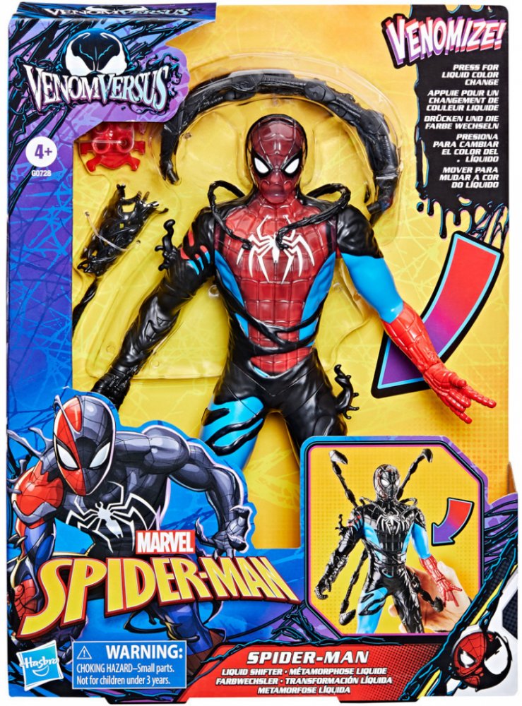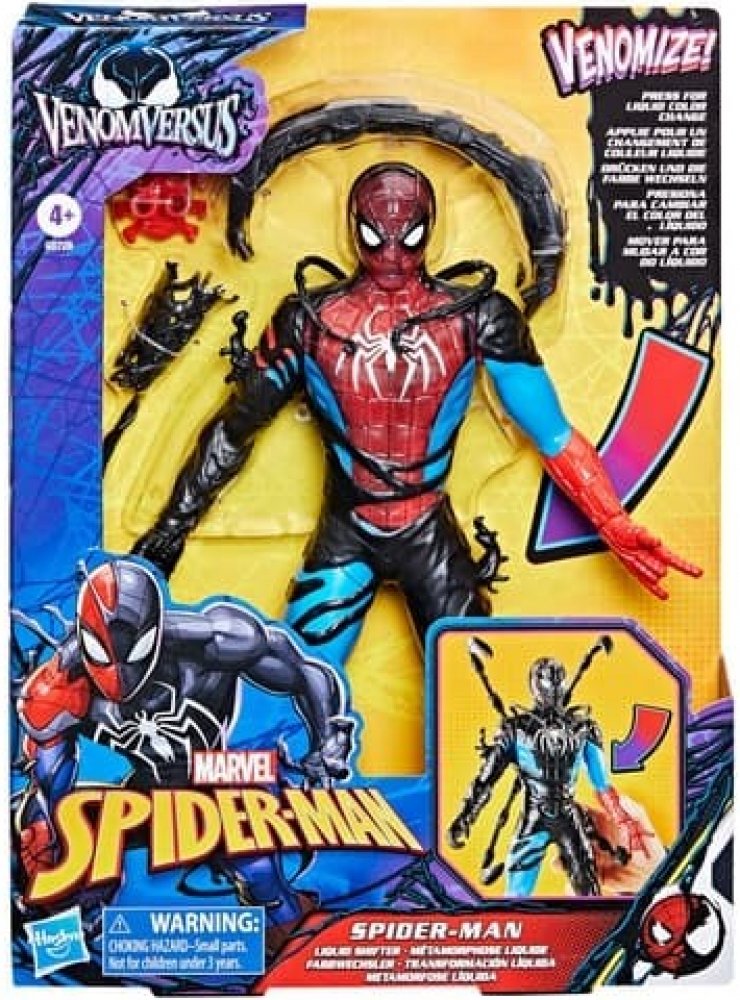 Představte si mimozemskou akci a dobrodružství poháněné symbionty s figurkami Marvel Spider-Man Venom Versus. Tato skvělá akční figurka Spider-Man Liquid Shifter je vysoká 27 cm a vyznačuje se designem a dekorem obleku Venomized Spider-Man inspirovaný komiksy Marvel. Připojte k hračce Spideyho 6 doplňků inspirovaných Venomem a začněte s transformací symbionta. Pak stiskněte paži figurky, abyste aktivovali funkci výměny kapaliny a sledujte, jak černá kapalina otravuje Spider-Mana. Po uvolnění černá tekutina ustoupí a postava se promění zpět na Spider-Mana. Díky pečlivým detailům je figurka Spider-Man z kolekce Venom Versus také skvělým sběratelským kouskem. Skvělý tip na dárek pro fanoušky všech věkových kategorií. Figurka má pohyblivé kloubové končetiny a hlavu. Akční figurka Spider-Man Liquid Shifter je kompatibilní s většinou příslušenství a vozidel ze série Titan Hero. Figurka je balena v open boxu. Vyrobeno z kvalitního plastu. Rozměry balení: 34,3 x 25,4 x 6,4 cm. Věk: 4+