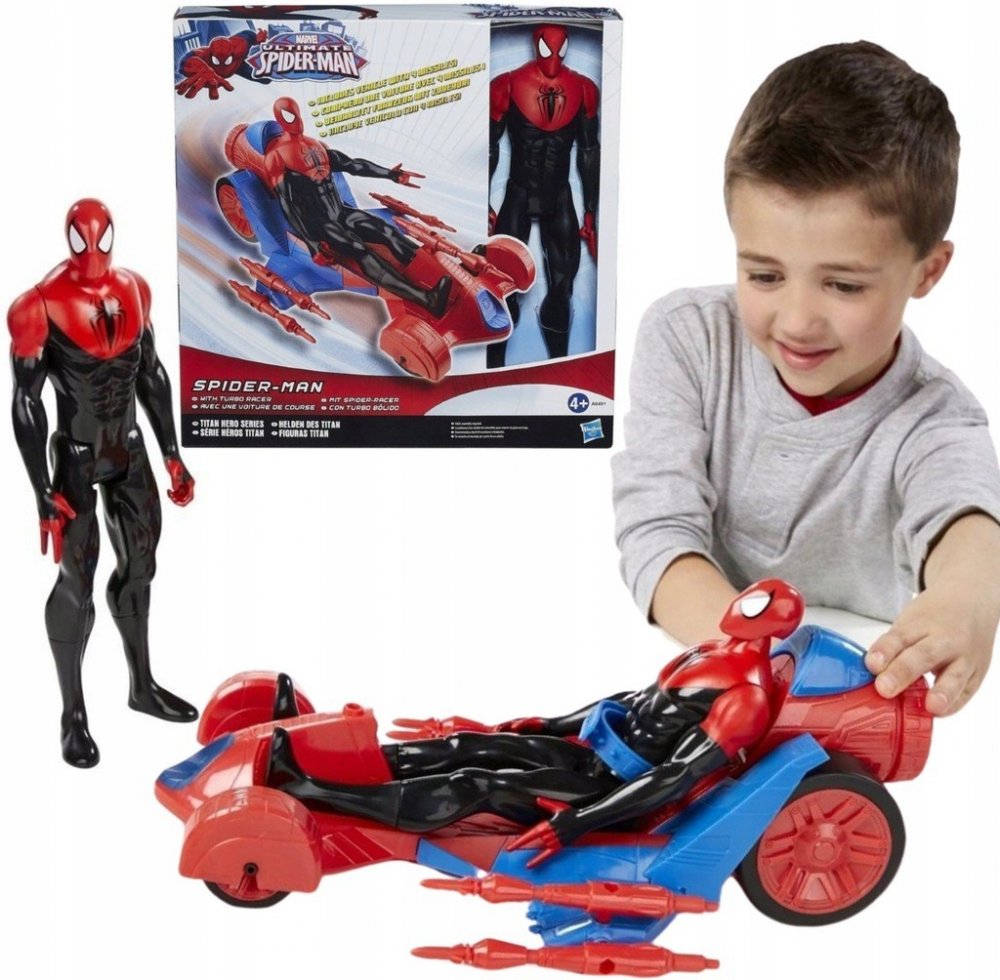 Oficiální hračka filmu SPIDERMAN. Vyrobeno HASBRO v licenci MARVEL. Má pohyblivé ruce a nohy. Součástí balení je navíc vozidlo Turbo Racer 4 vystřelovači.