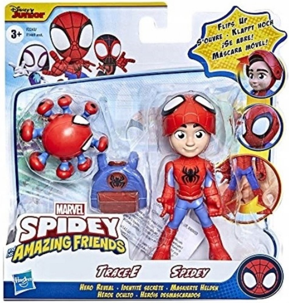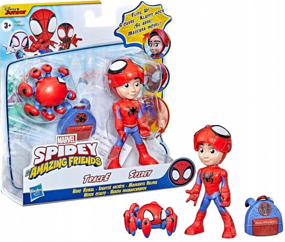 - Odhalení hrdiny: V předškolním programu Disney Junior Spidey a jeho úžasní přátelé si naši hrdinové zachovávají svou identitu v tajnosti. Díky dvojbalení Hero Reveal mohou děti předstírat, že objevují dětskou verzi jednoho ze svých oblíbených hrdinů – Petera Parkera.