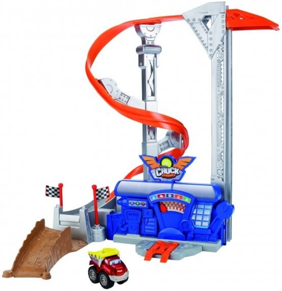 Vezměte Chucka do diagnostického centra, aby se připravil na super jízdu. Na dráhu ho vyveze výtah a Chuck se pak spustí dolů z věže divokou dráhou. Hrací set obsahuje autíčko Chuck. Kvalitní a bezpečný plast. Velikost: 89×508×356 mm. Balení obsahuje dráhu i 1 autíčko. Věk: 3+