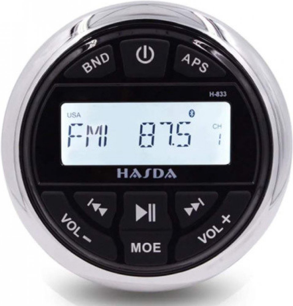 Voděodolný (lodní) USB/MP3 přehrávač s krytím IP66. Má podsvícený LCD displej, AM/FM tuner a vestavěný 4-kanálový digitální zesilovač s výkonem 4x 45W. Přehrávač obsahuje Bluetooth pro bezdrátové přehrávání hudby z mobilního telefonu, tabletu nebo PC, stereo AUX vstup (2x RCA) a stereo AUX výstup (2x RCA).- impedance zátěže 4x 4-8ΩPOSLEDNÍ KUS SKLADEM BEZ ČESKÉHO NÁVODU.