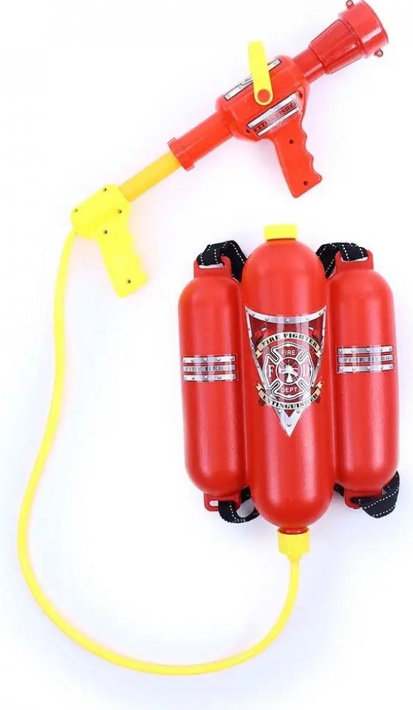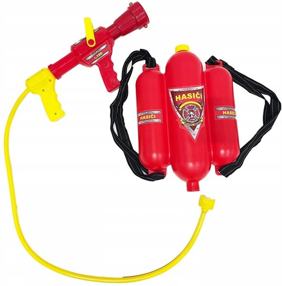 Hasičská sada stříkací funkční pistole s hasičským přístrojem plast. Zažij opravdickou záchrannou akci a využij k tomu tuto skvělou hasičskou sadu! Naplň zásobník vodou, přišroubuj hadici a můžeš začít hasit!Požárníci jsou vzorem pro mnoho malých chlapců, kteří se také touží stát hrdinnými zachránci. Každého malého hasiče potěší funkční hasicí přístroj, který si může vzít na záda a jít hasit fikti...