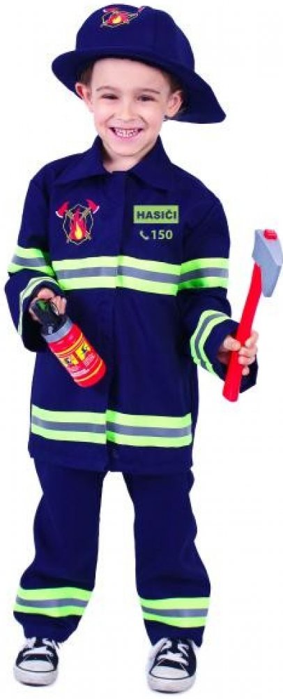 Který z chlapců by se nechtěl v dětství stát hasičem? S tímto exkluzivním dětským kostýmem se v něj proměníte během chvilky! Sada obsahuje blůzu s nápisem HASIČI, kalhoty a čepici. Kostým velikosti S je určen pro chlapečky ve věkovém rozmezí 4-6 let (105-116 cm).