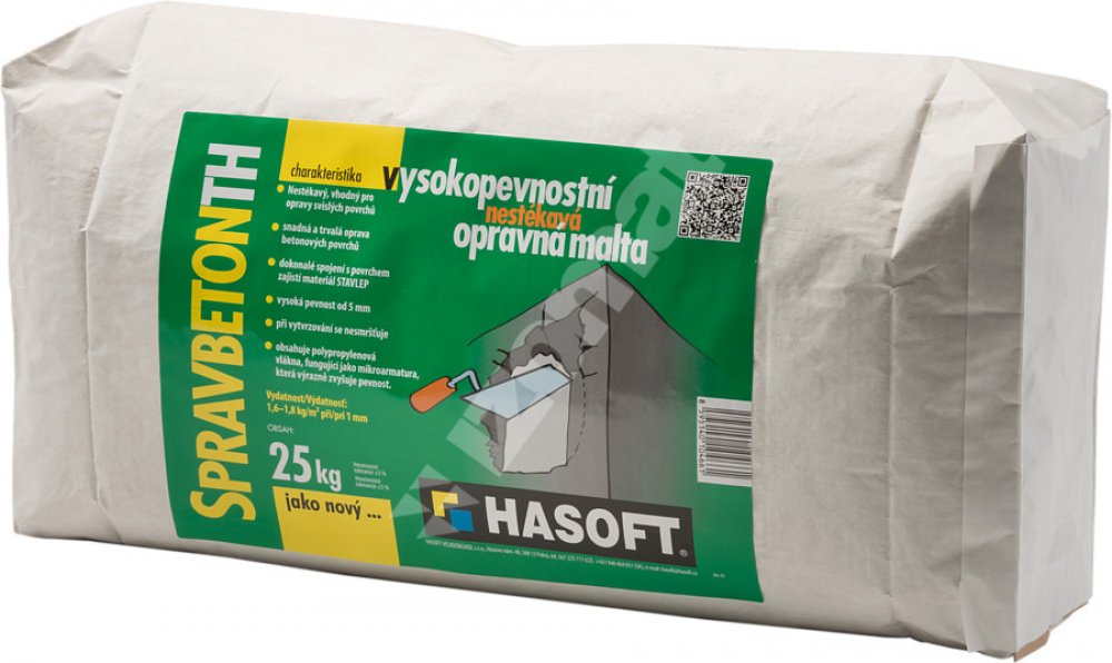 Tixotropní opravná malta pro svislé betonové a železobetonové povrchy bez stékání. SPRAVBETON TH je jednosložková suchá maltová směs určená především pro opravy poškozených betonových a železobetonových vertikálních povrchů a podhledů. Je vyrobena na bázi portlandského cementu s obsahem redispergovatelných polymerů, PP vláken a přísadou proti stékavosti, což ji činí vhodnou pro svislé konstrukce. Po smíchání pouze s vodou vznikne homogenní opravná hmota, která se dá nanášet ručně i nástřikem a umožňuje opravy vrstev již od přibližně 5 mm tloušťky. SPRAVBETON TH má dobrou zpracovatelnost a je tixotropní, tedy nestékavý, což usnadňuje práci na svislých plochách. Produkt má výbornou přilnavost k betonovému podkladu i výztuži a po vytvrdnutí je trvale odolný vůči vodě i mrazu. Opravné vrstvy mají dobré mechanické vlastnosti, neztékají při aplikaci a jsou pochůzné přibližně po 24 hodinách.