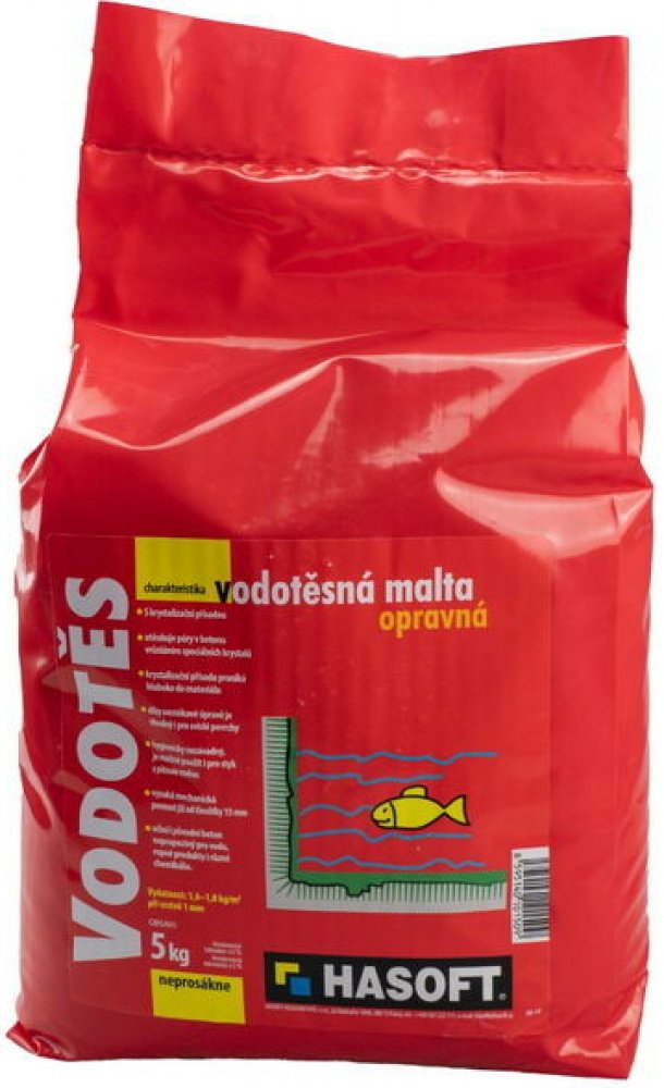 Vodotěs Hasoft je maltová směs určená zejména ke zhotovení hydroizolační vrstvy na betonovém podkladu. Uplatnění nalézá rovněž při opravách prosakujících betonových a železobetonových konstrukcí. Na povrchu betonové konstrukce vytváří izolační vrstvu nepropustnou pro vodu, oleje, organická rozpouštědla, ropné produkty apod.PoužitíJe určená zejména ke zhotovení hydroizolační vrstvy na betonovém pod...