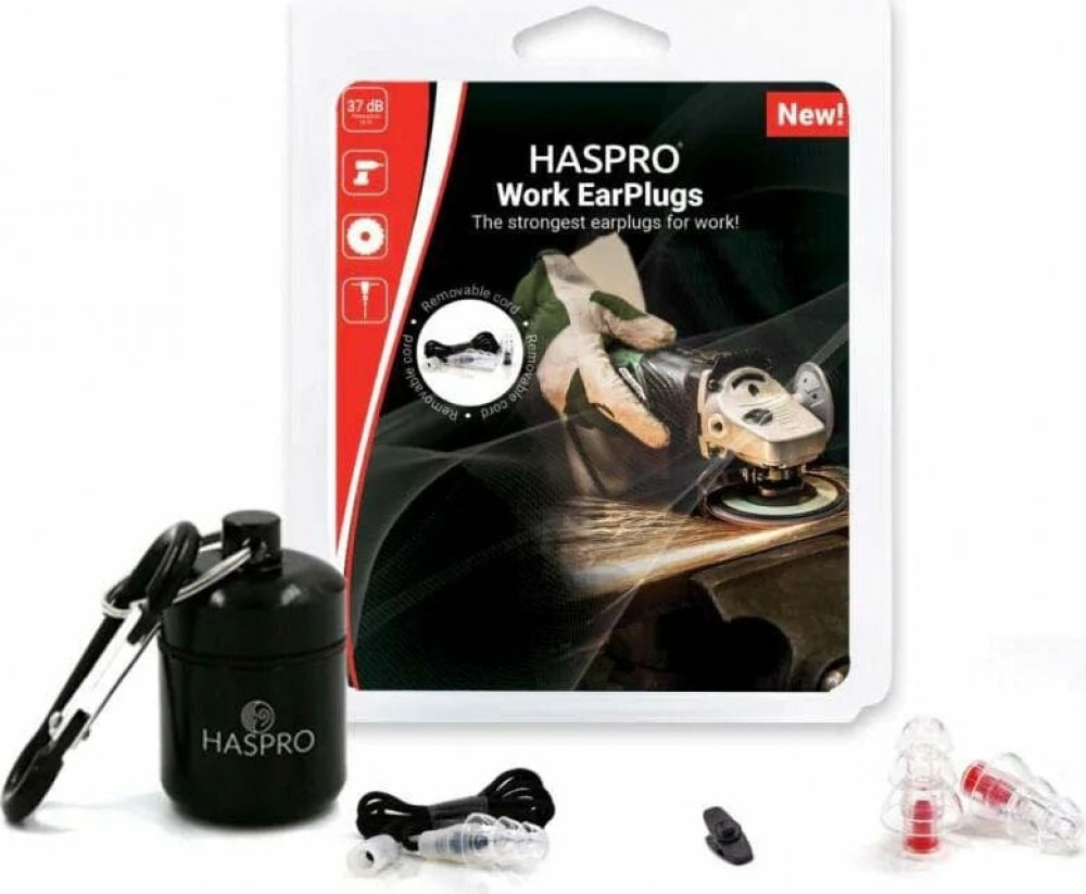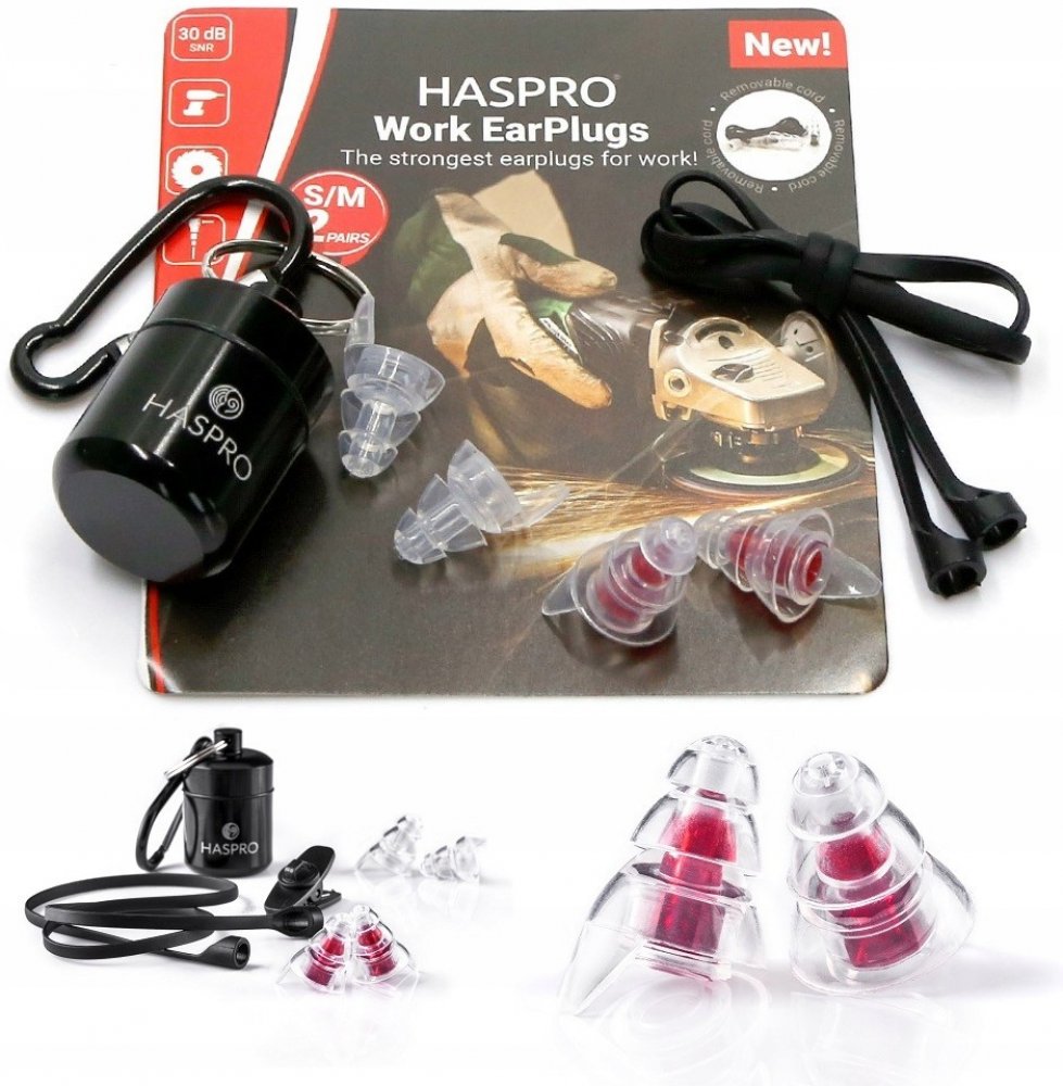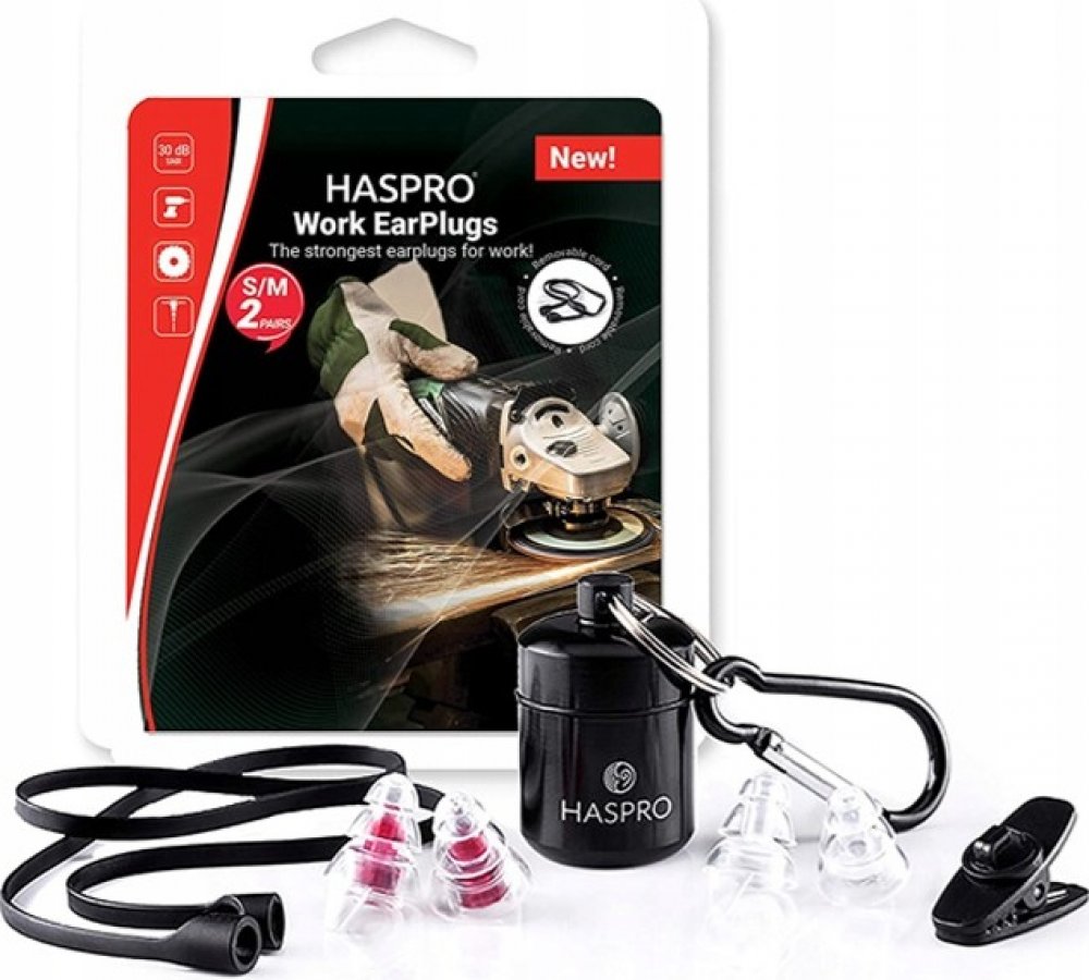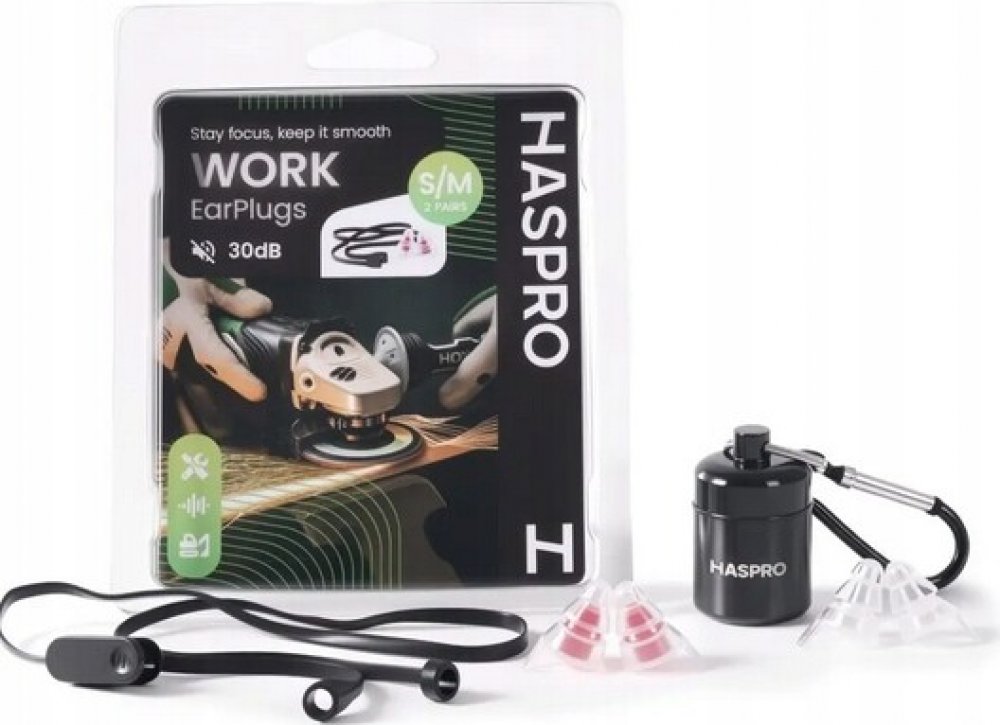 Haspro Work Universal jsou nejsilnější profesionální špunty do uší určené pro práci. Tyto špunty do uší mají velmi vysokou útlumovou schopnost (SNR 30dB), což z nich činí v současné době jedny z nejsilnějších a zároveň nejúčinnějších špuntů do uší v této kategorii. Dokážou tlumit hluk až o 37 dB (vysoké frekvence – tabulka útlumu), tj. hluk, který má negativní vliv na náš sluchový systém. Zároveň však, zajišťují srozumitelnost lidské řeči nebo jiných hlášení a výstražných signálů, jejichž slyšitelnost je nezbytná ve výrobním procesu. Účinná ochrana sluchu při práci . Haspro Work Universal nejenže poskytují vysoké tlumení nadměrného a nebezpečného hluku. Jsou jedny z mála, které umožňují, s tak vysokým útlumem, zachovat komunikaci a slyšitelnost signálů a alarmů, což je při práci zásadní. Bezpečnost, komunikace a ochrana sluchu a zdraví, z nich činí jedny z nejlepších špuntek do uší pro práci, které jsou na trhu k dispozici. Skvělá sada – dlouhá životnost 2 kusy špuntek do uší ve velikosti S-Small 2 kusy špuntek ve velikosti R-Regular Tlumící a prodyšný filtr - SNR: 30 dB Materiál: hypoalergenní silikon Hliníkové praktické pouzdro Volná komunikace s jinou osobou Šňůrka + bezpečnostní spona