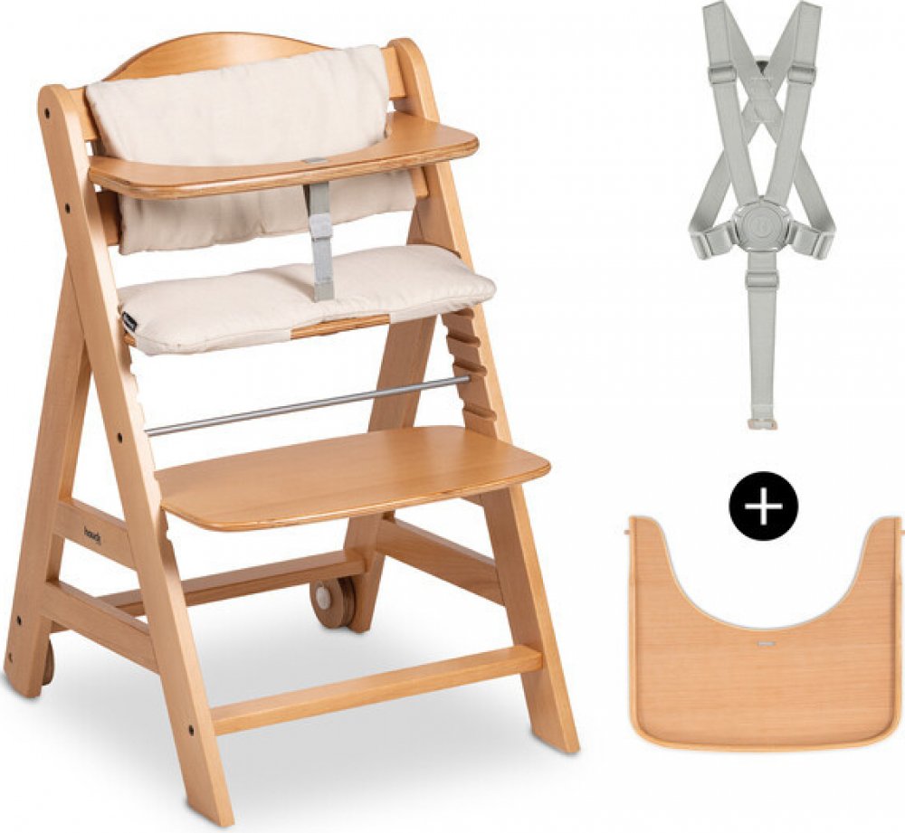 Náš tip: V kombinaci s Alfa Bouncer 2v1 (není v ceně) lze naše dřevěné židličky použít od narození dítěte, a ne až od 6 měsíců. Proměníte tak Betu + na společníka pro celý život.